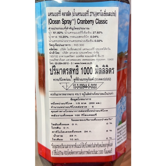 ✅ Ocean Spray Cranberry Classic 1000ML. น้ำแครนเบอร์รี่เข้มข้นทำให้ผิวพรรณชุ่มชื่น ผิวมีสุขภาพดี ฟื้นฟูคอลลาเจน