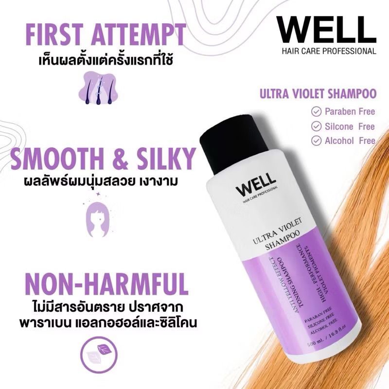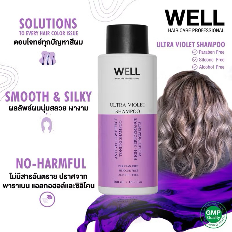 (COD) แชมพูม่วง WELL ULTRA VIOLET SHAMPOO 500ml. ล็อคสีผม ติดทนนาน โดนความร้อนสีไม่เฟด ไม่ติดมือ ผมไม่ฝืด