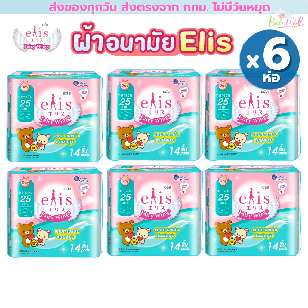 (ส่งด่วน/ส่งทันที🔥) Elis ผ้าอนามัย เอล ิส แฟรี่วิงส์ มีทั้งกลางวัน กลางคืน หลายแบบให้เลือก (แพค 6 ห่อ) สุดคุ้ม.