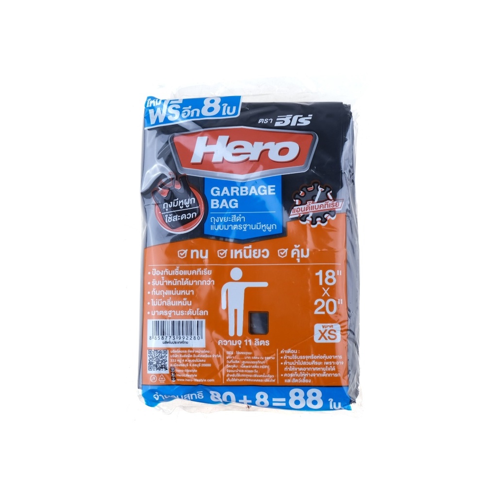 HERO ถุงขยะ ขนาด 18x20 สีดำ (88 ใบ) |ZWG|