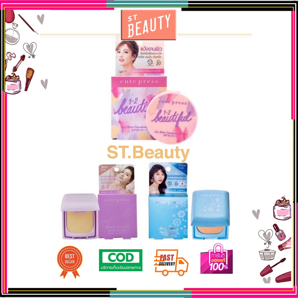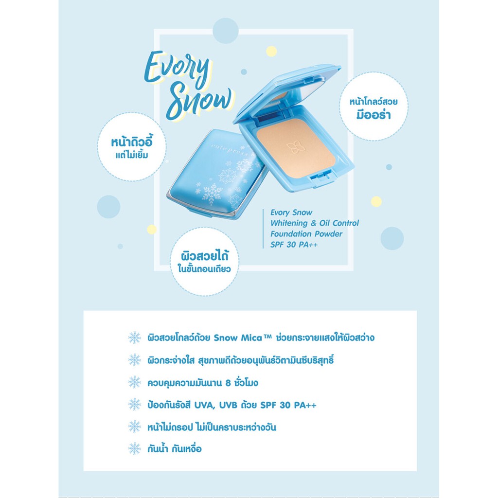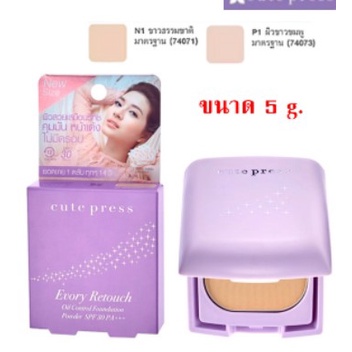 (ตลับเล็ก5g/ตลับจริง12g)Cute press Evory Snow /Evory Retouch CUTE PRESS EVORY RETOUCH OIL CONTROL FOUNDATION POWDER spf