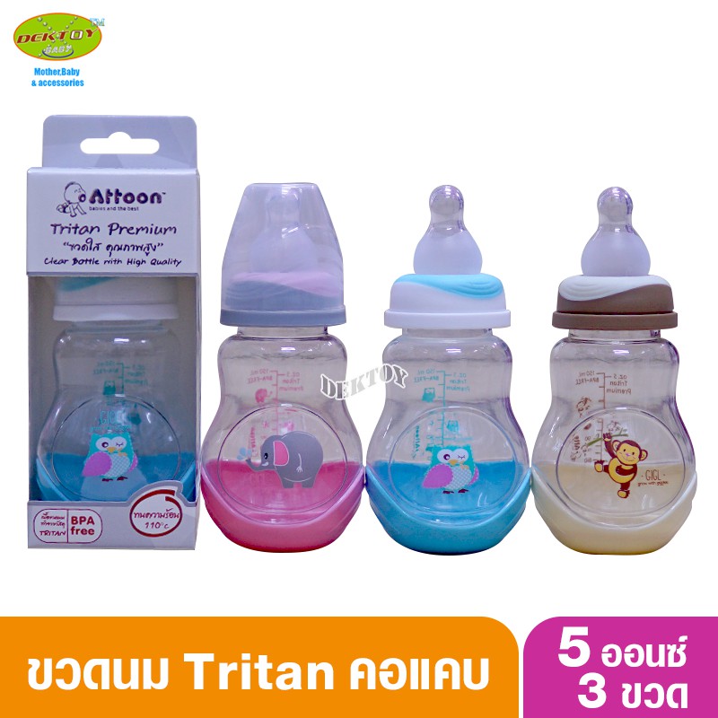 3 ขวด Attoon แอทตูน ขวดนม Tritan ไทรทัน 5 ออนซ์ คอแคบ