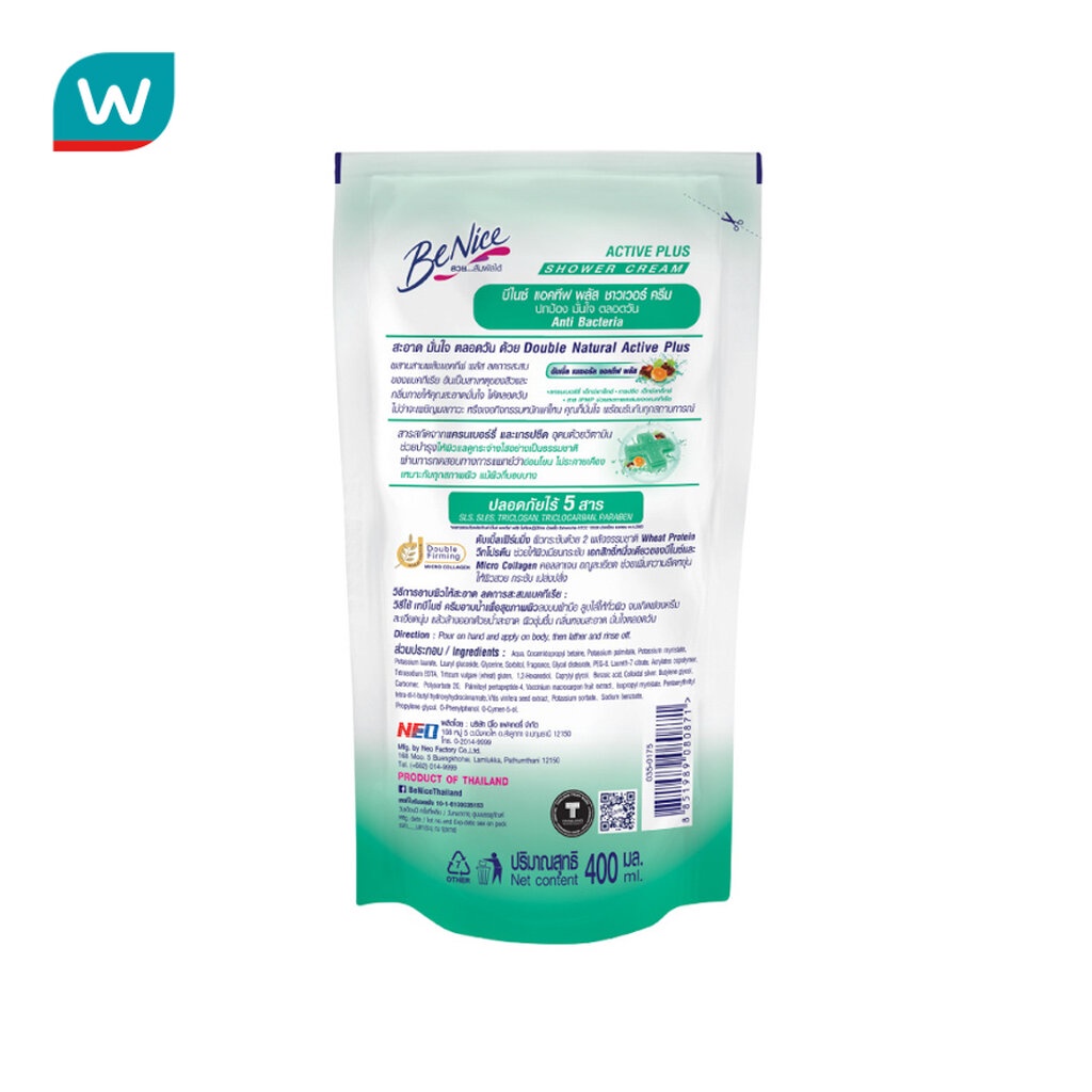 Benice บีไนซ์ ครีมอาบน้ำ แอนตี้ แบคทีเรีย แอคทีฟ พลัส 400 มล. ถุงเติม