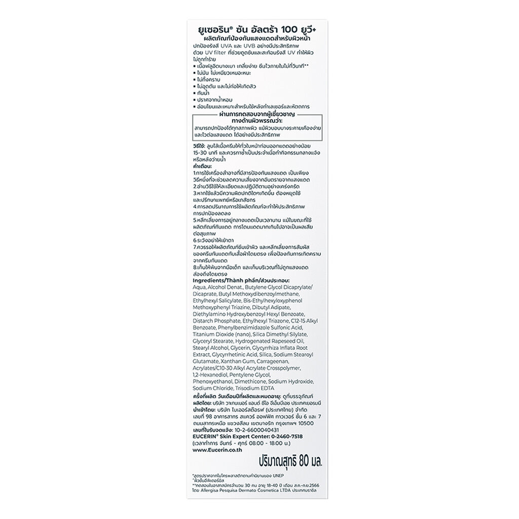Eucerin ยูเซอริน ซัน อัลตร้า 100 ยูวี+ 80 มล. กันแดดสำหรับผิวหน้า