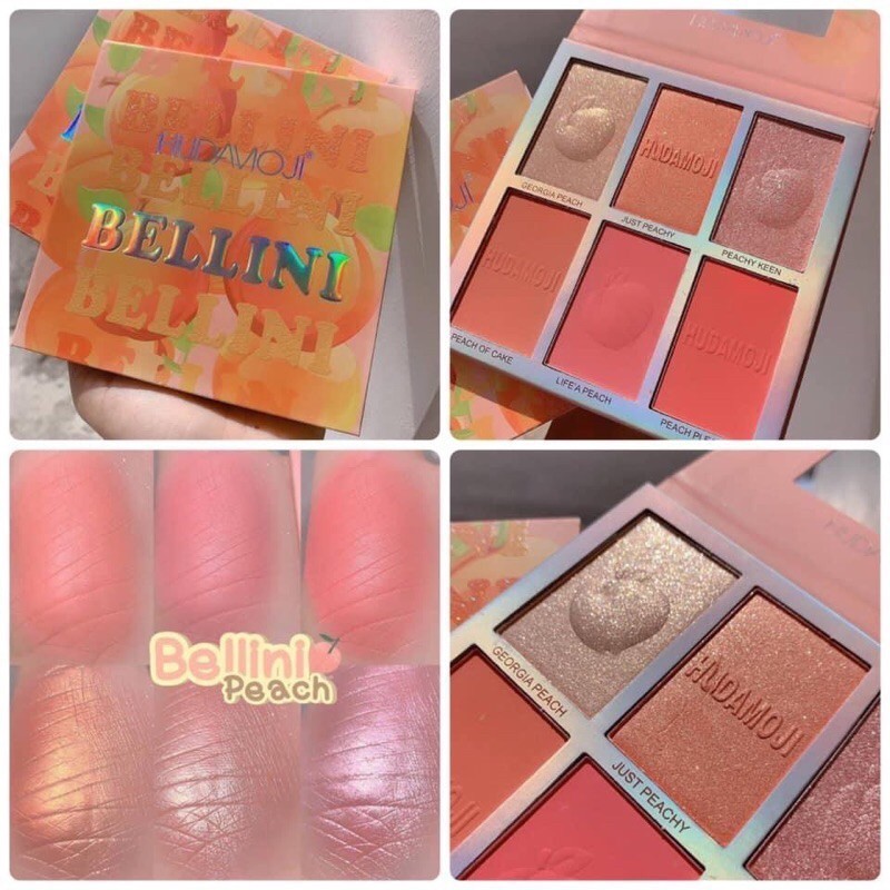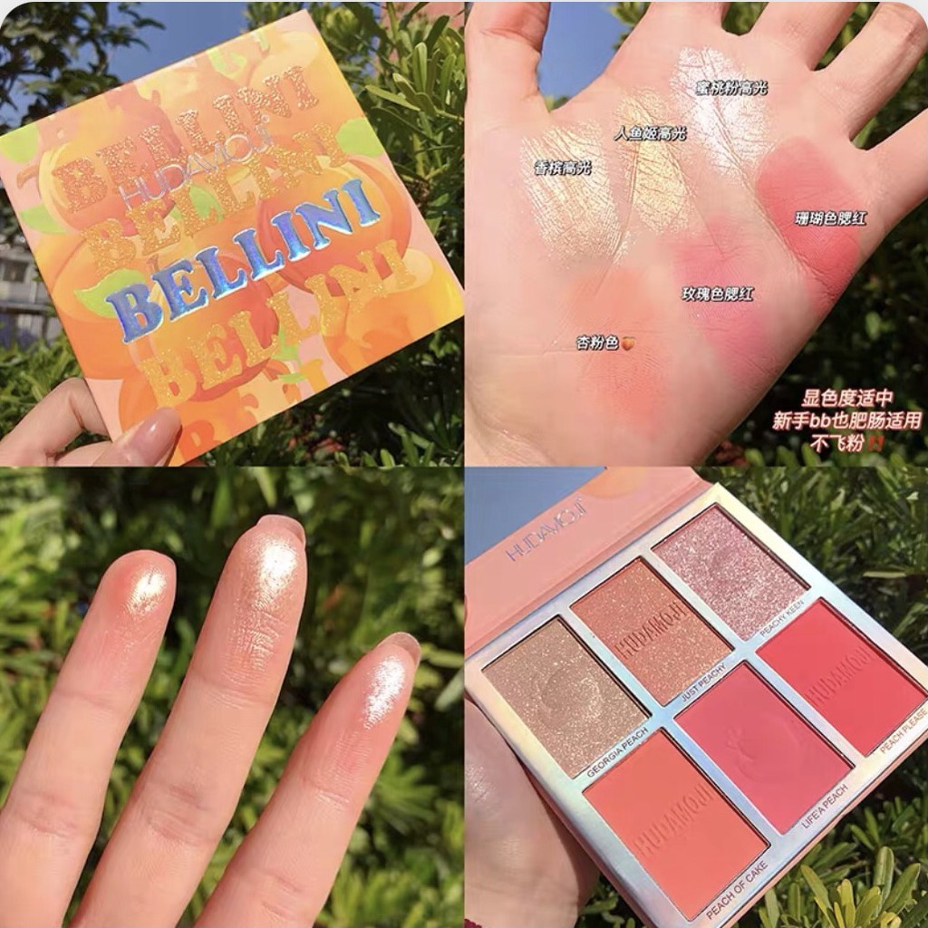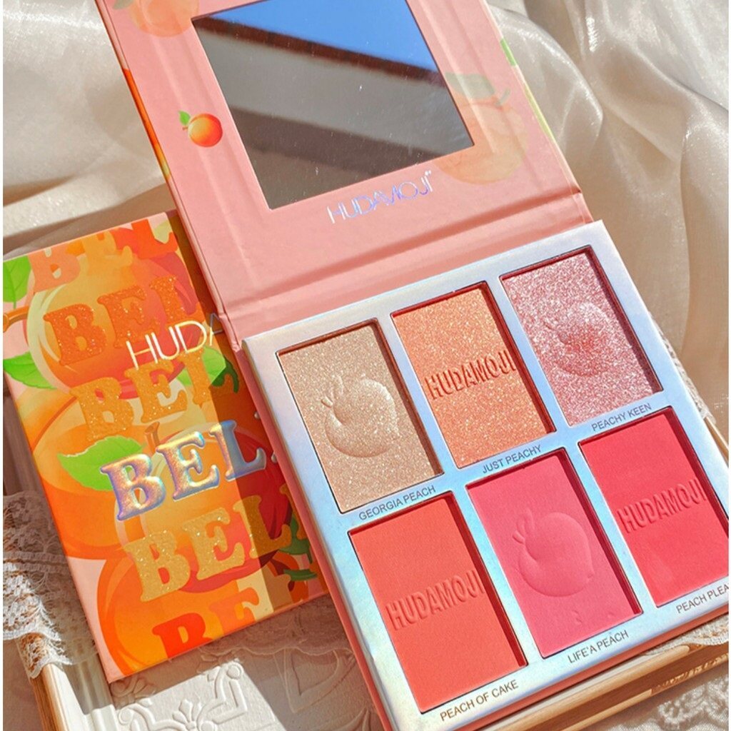 ฮูดาโมจิ พาเลท 6สี บลัชออน +ไฮไลท์ สีพีช ฉ่ำวาว ติดทน กันน้ำ B-015 HUDAVIOJI 6 COLORS BLUSHER&HIGHLIGHTER PALETTE