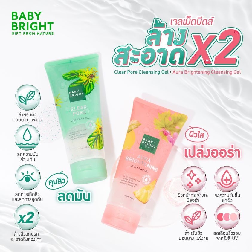 Baby Bright คลีนซิ่งเจล สูตรแพ้ง่าย【เจลล้างหน้า】Cleansing Gel Clear Pore & Aura Brightening 185g