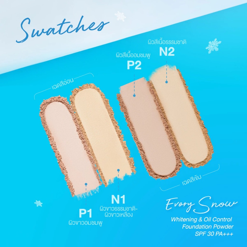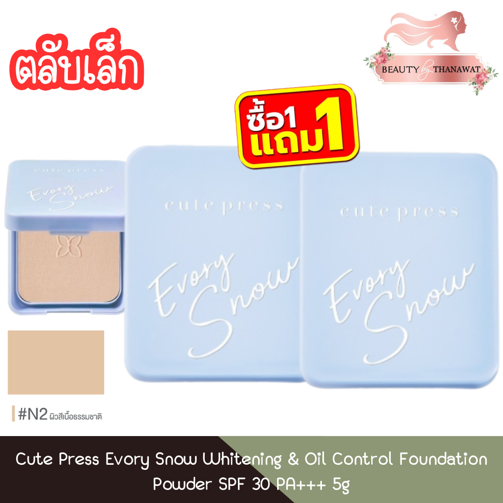 (ตลับเล็ก 1แถม1-ฟ้า N2) Cute Press Evory Snow Whitening & Oil Control Foundation Powder 5g คิวท์เพรส อิเวอร์รี่ สโนว์ 5ก