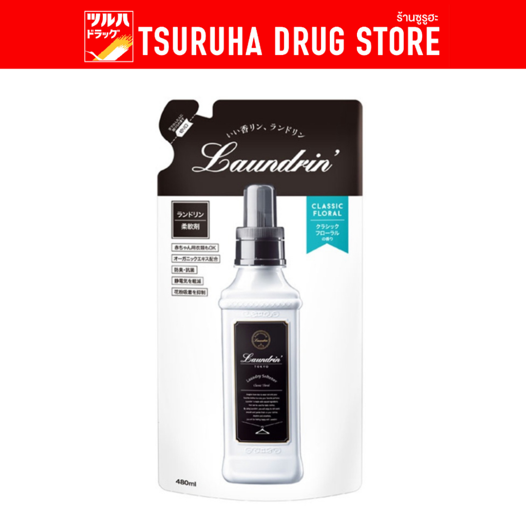 ลอนดริน น้ำยาปรับผ้านุ่ม กลิ่นคลาสสิค ฟลอรัล ชนิดถุงเติม 480มล. / Laundrin Fabric Softener Classic Floral Refill Bag 480