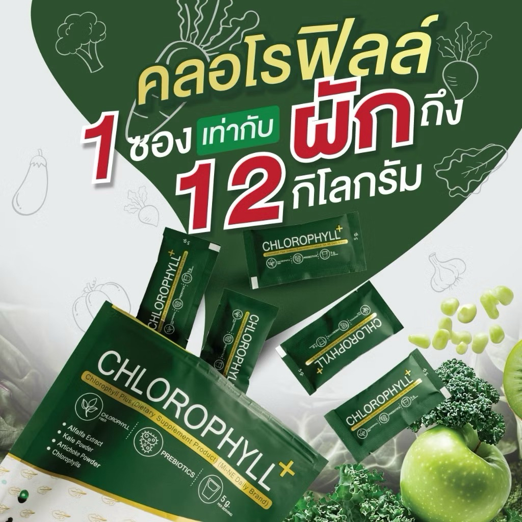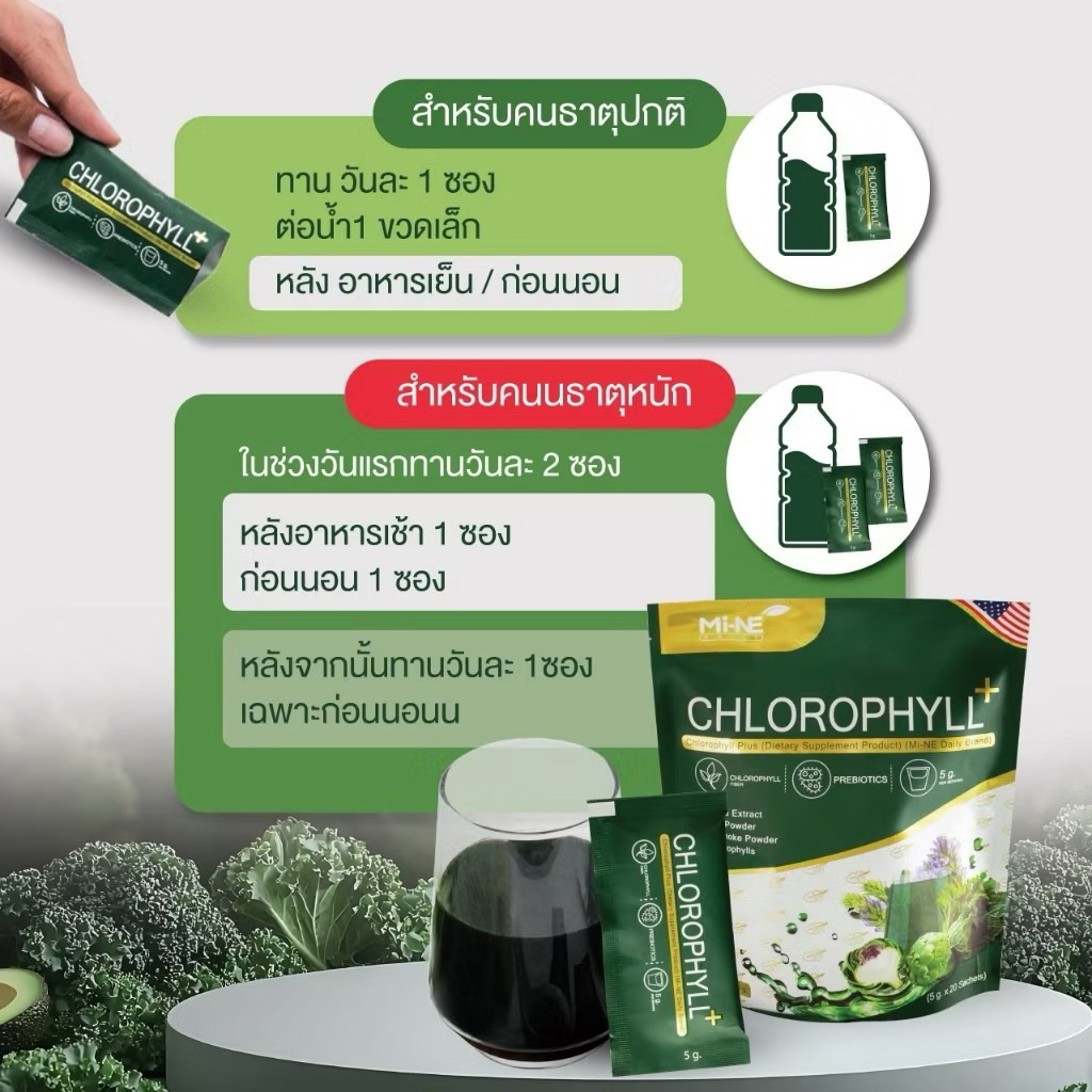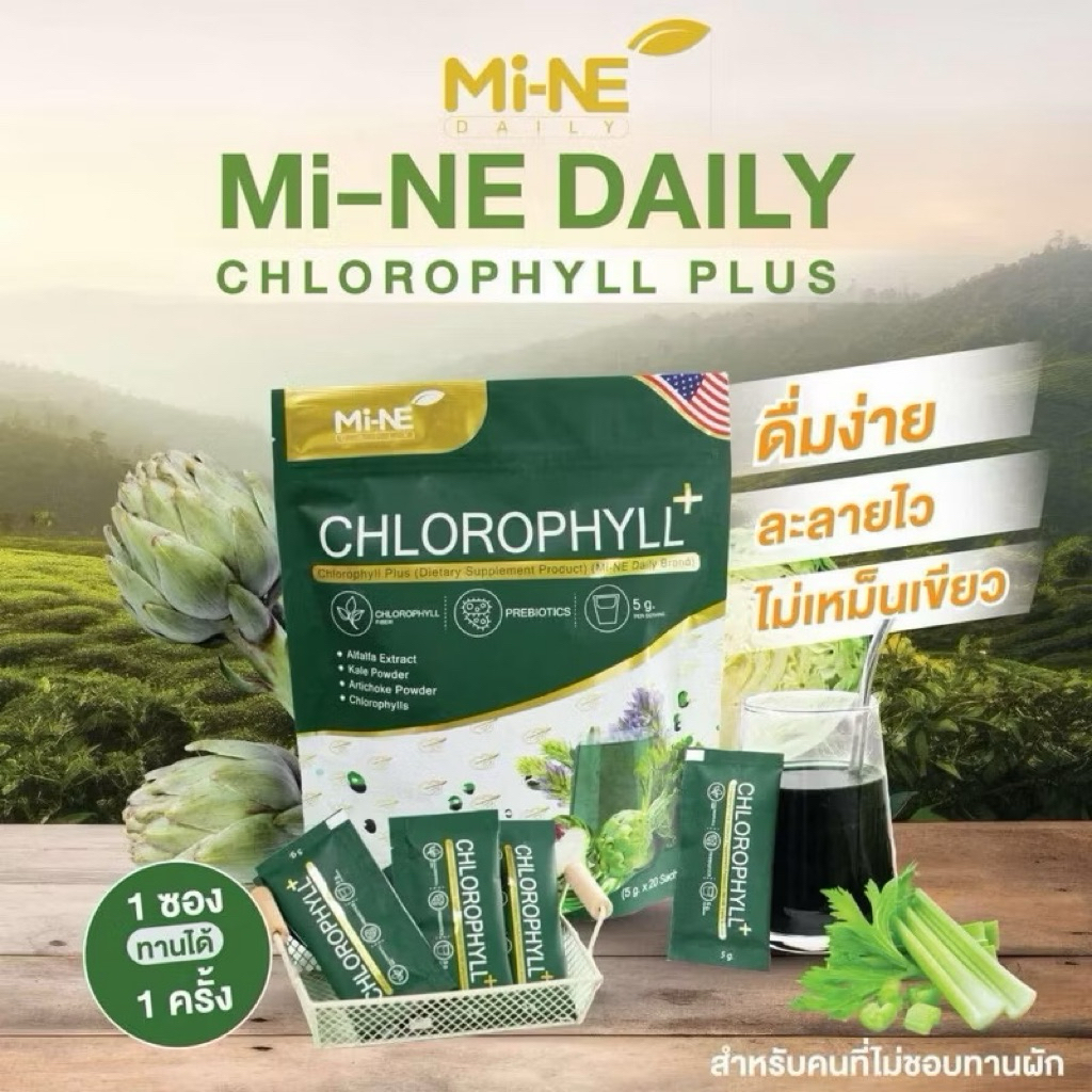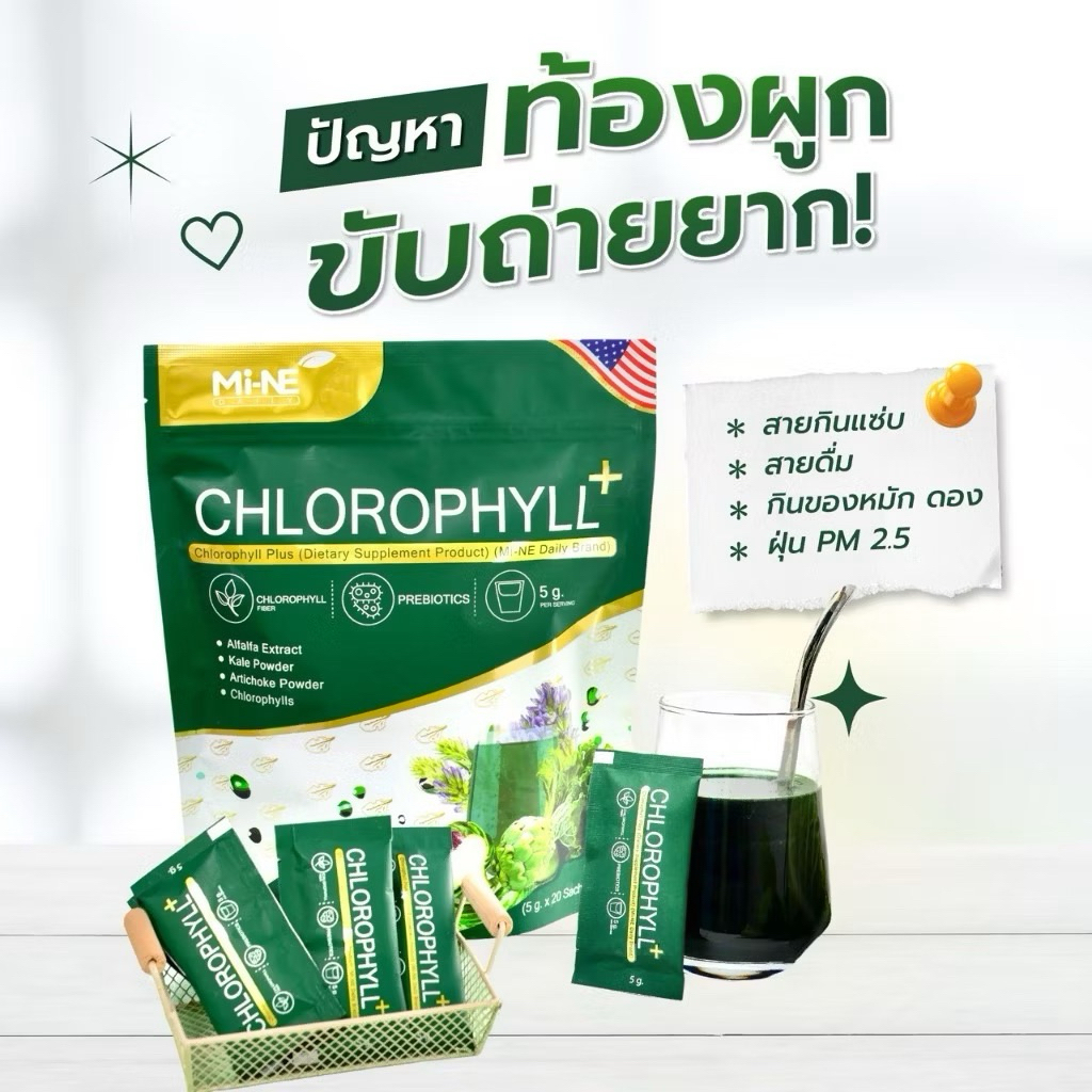 คลอโรฟิลล์มายมิ้นท์ อาสัว 1 ถุง 10 ซอง Mi ne Mine chlorophyll+ ขับสารพิษ ล้างลำไส้ คลอโรฟิลล์