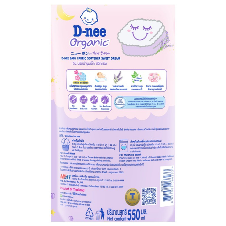D-nee Organic Baby Fabric Softener Sweet Dream น้ำยาปรับผ้านุ่มเด็ก สูตรสวีทดรีม (550 มล.)