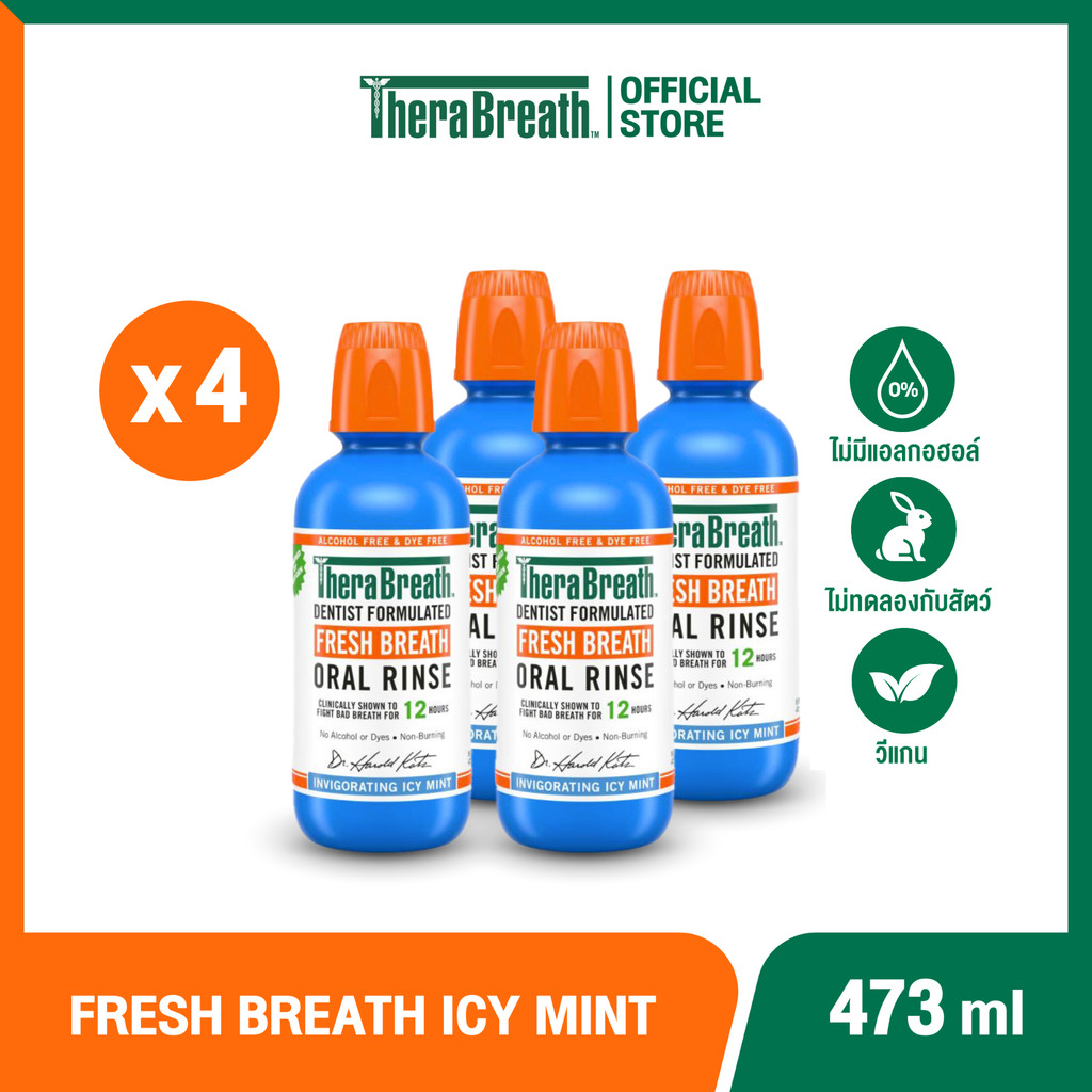 [แพ็คx4] TheraBreath 473 ml สูตร Invigorating Icy Mint - Mouthwash น้ำยาบ้วนปาก ลดกลิ่นปาก ไม่มีแอลกอฮอล์