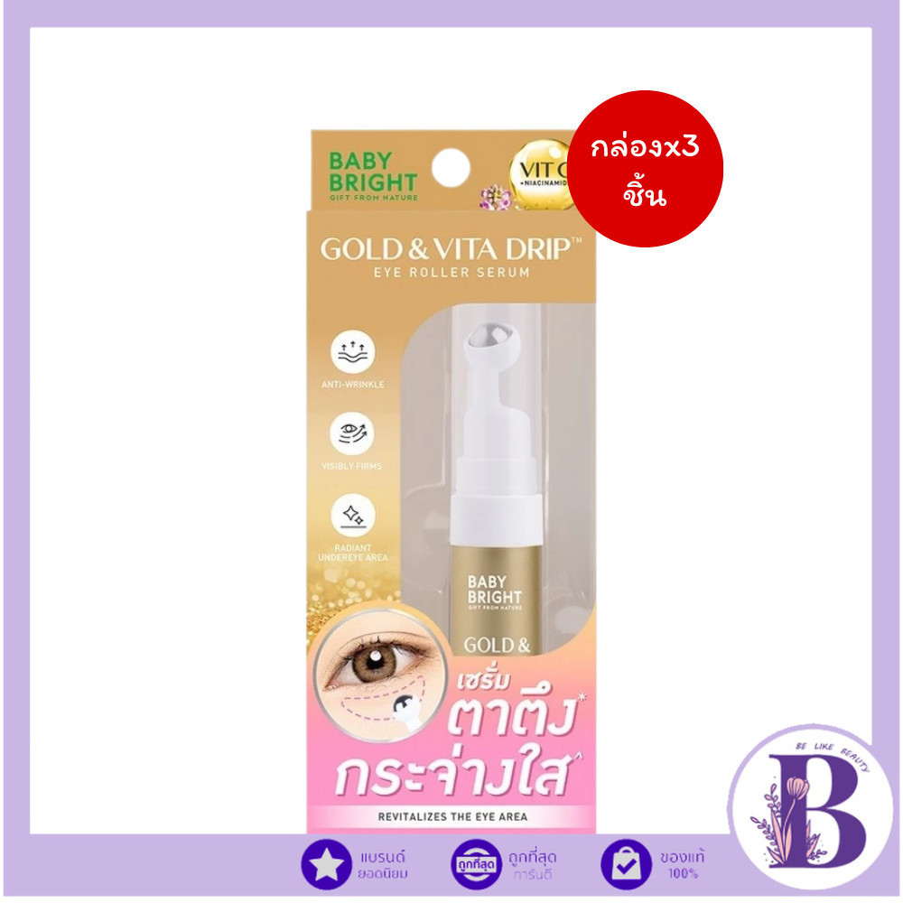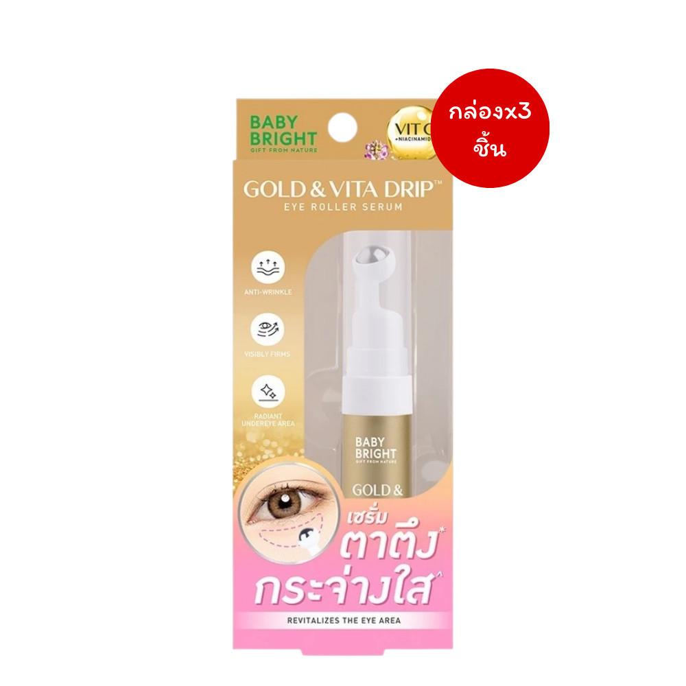 🔥แท้/ดีลสุดคุ้ม/ไลฟ์ทุกวัน🔥(กล่องx3ชิ้น) Baby Bright Gold & Vita Drip Eye Roller Serum 10ml.