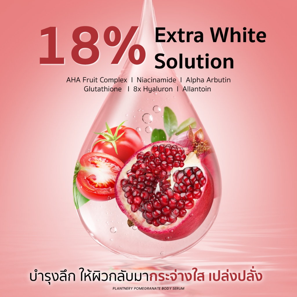 Plantnery Pomegranate AHA Extra White Red Body Serum 250 ml เซรั่มเจลแดงทับทิมเข้มข้น