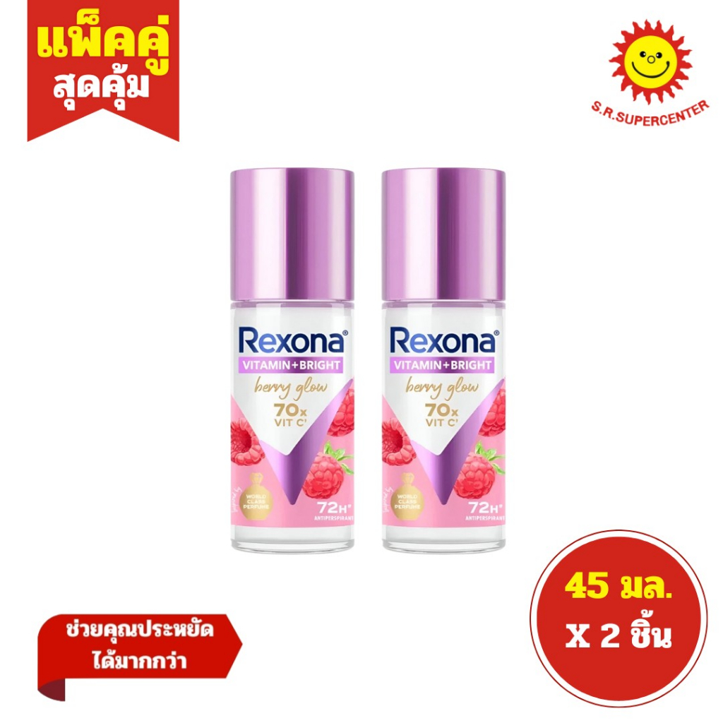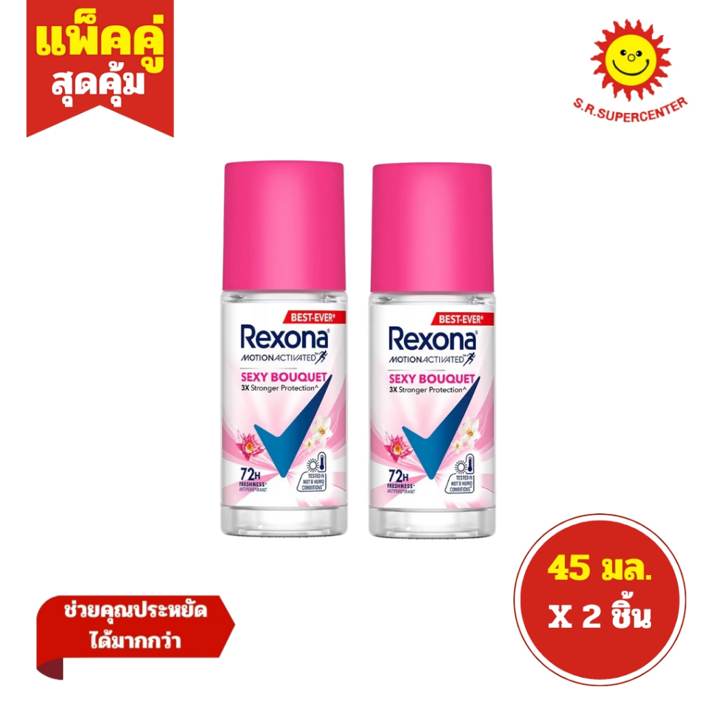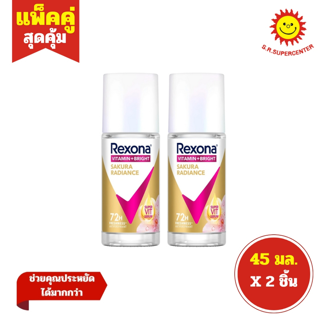 [ แพ็คคู่ ] Rexona เรโซนา โมชั่น แอคทีฟ วิตามิน+ไบรท์ โรลออนระงับกลิ่นกาย ขนาด 45 มล. (แพ็ค2ขวด) คละสูตร