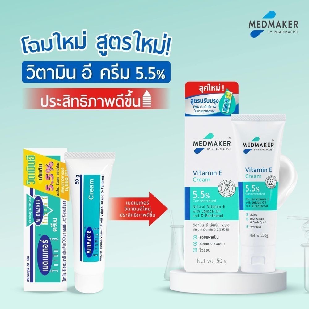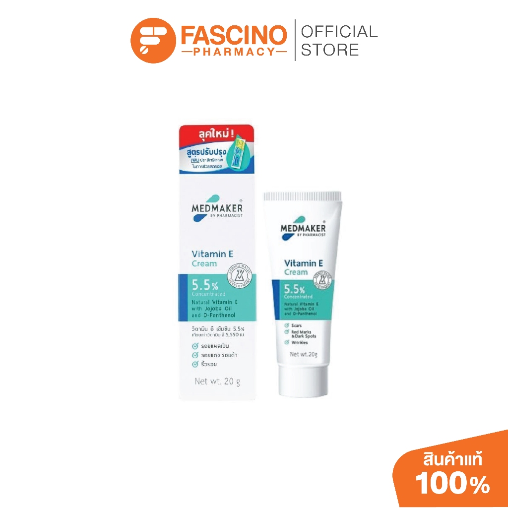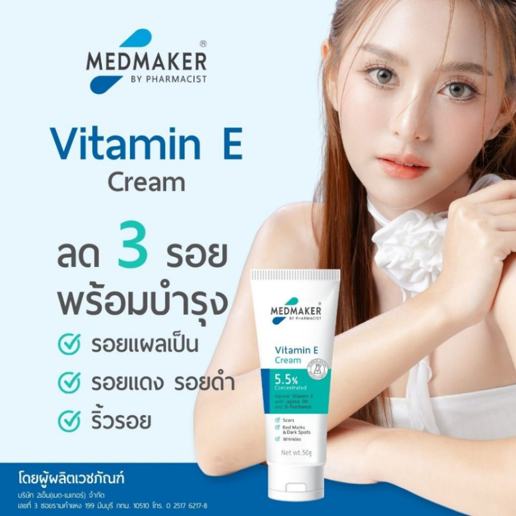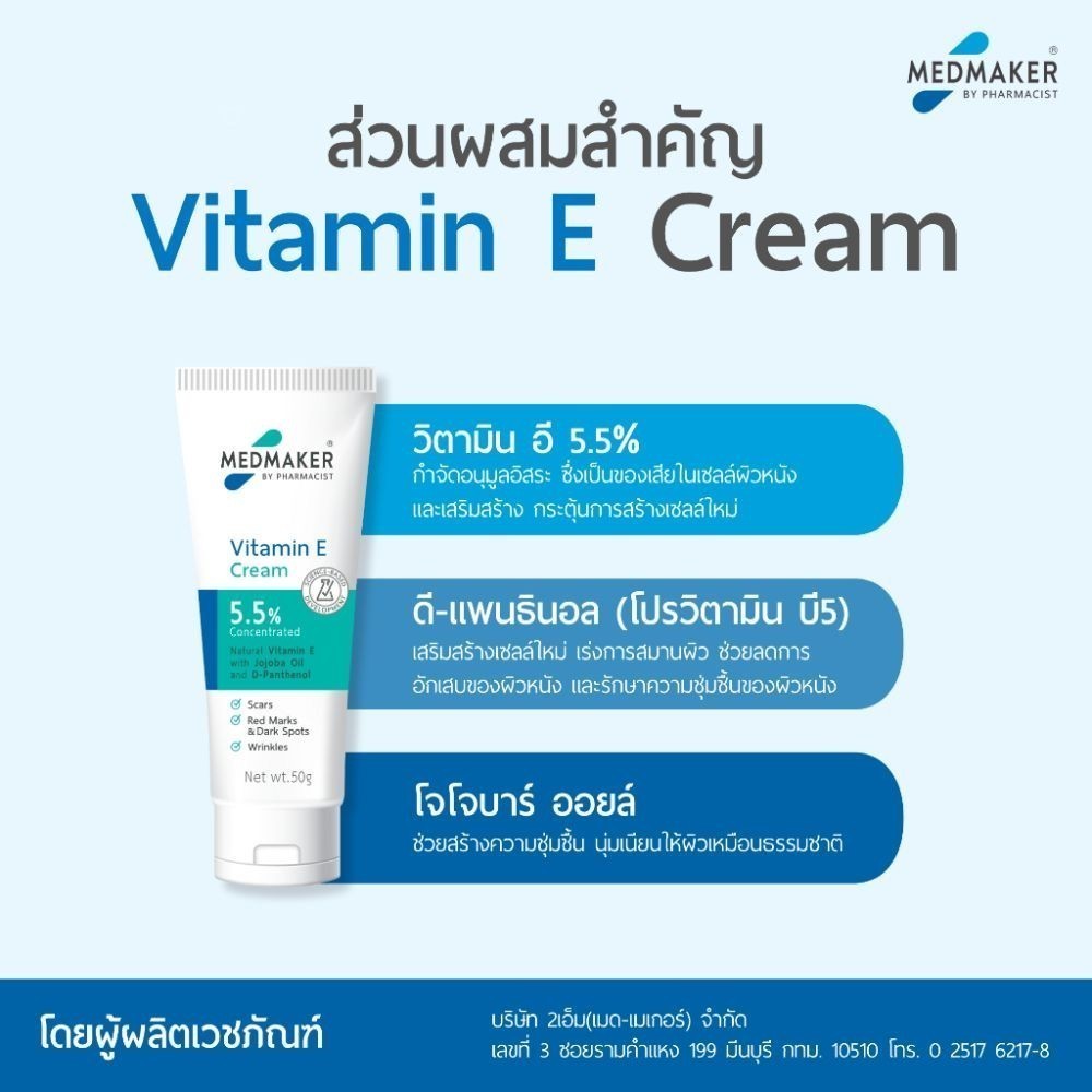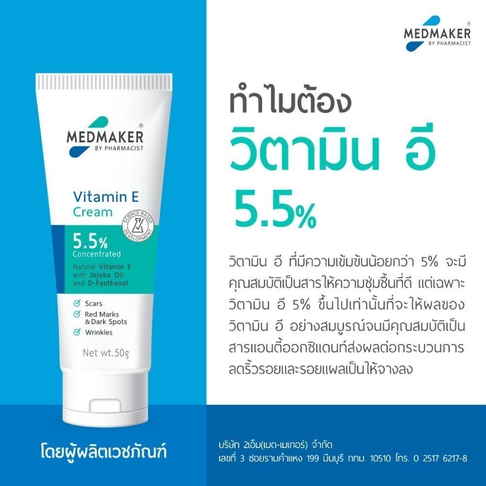 Medmaker Vitamin E Cream 5.5% 20g เมดเมกเกอร์ ครีมวิตามินอี ลดรอยดำ รอยสิว