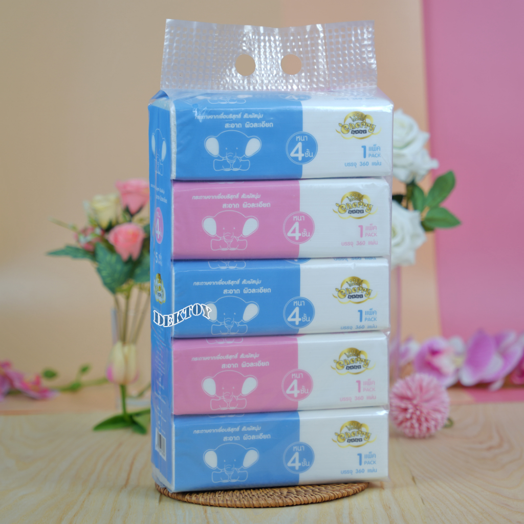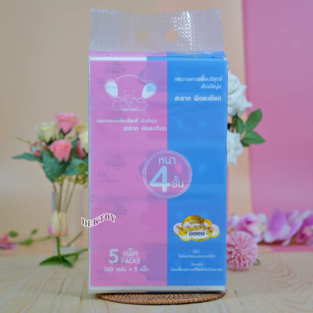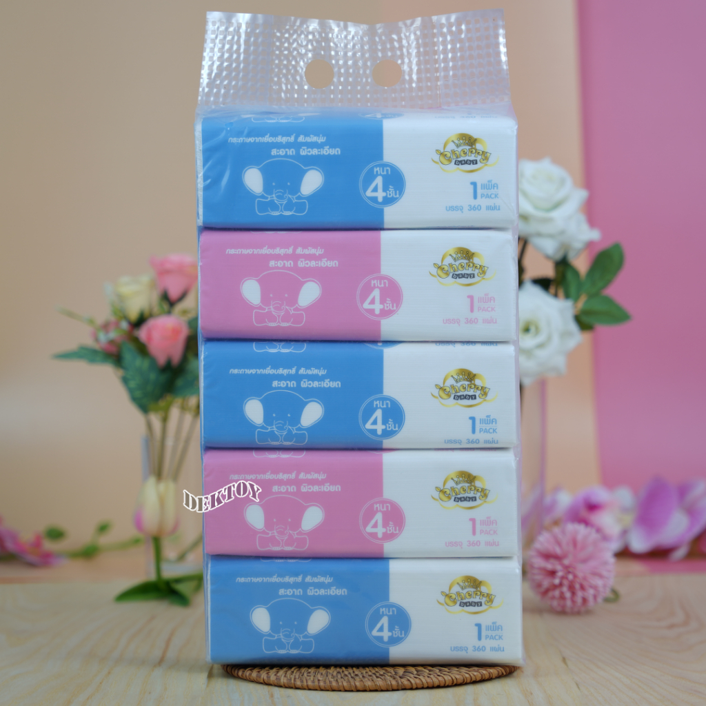 ทิชชู่เด็ก 4แพ็ค กระดาษทิชชู่ เชอรี่เบบี้ Cherry Baby ขนาดใหญ่ 90 ชิ้น 4แพ็คx 1แพ็คมี5ห่อ