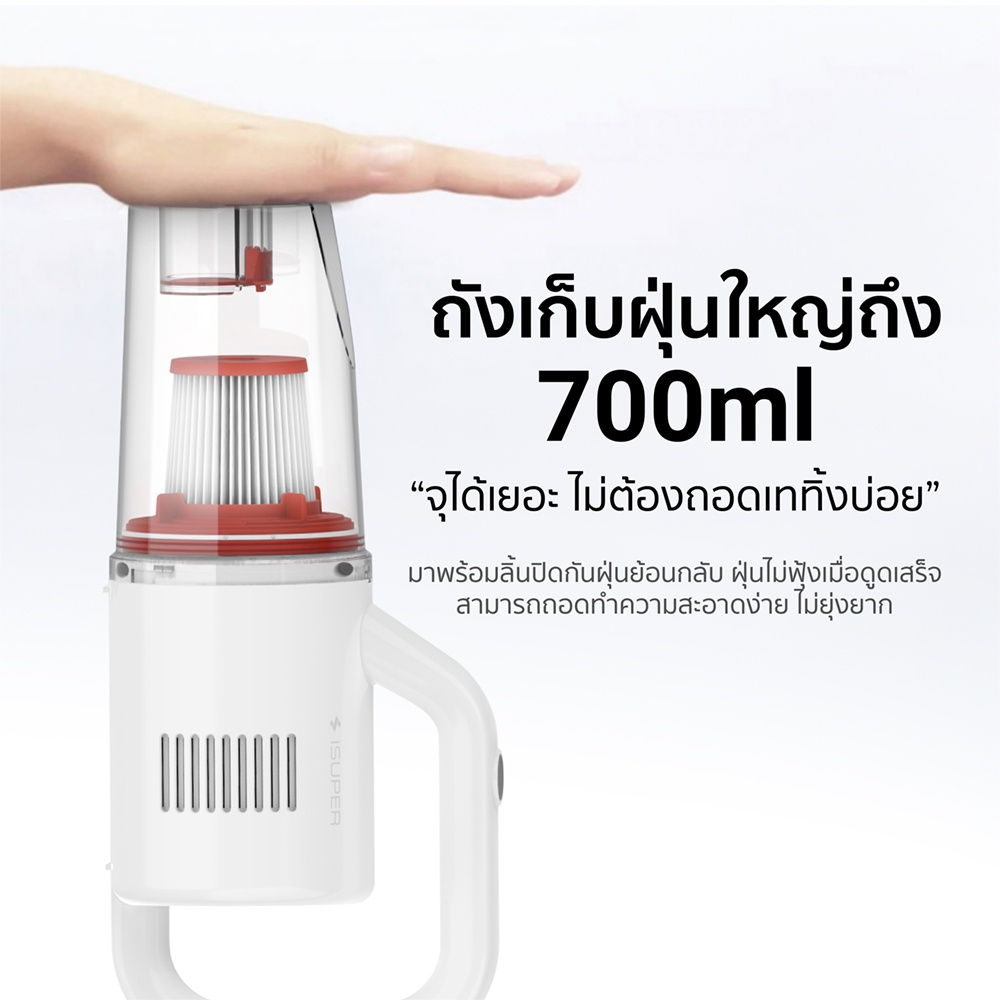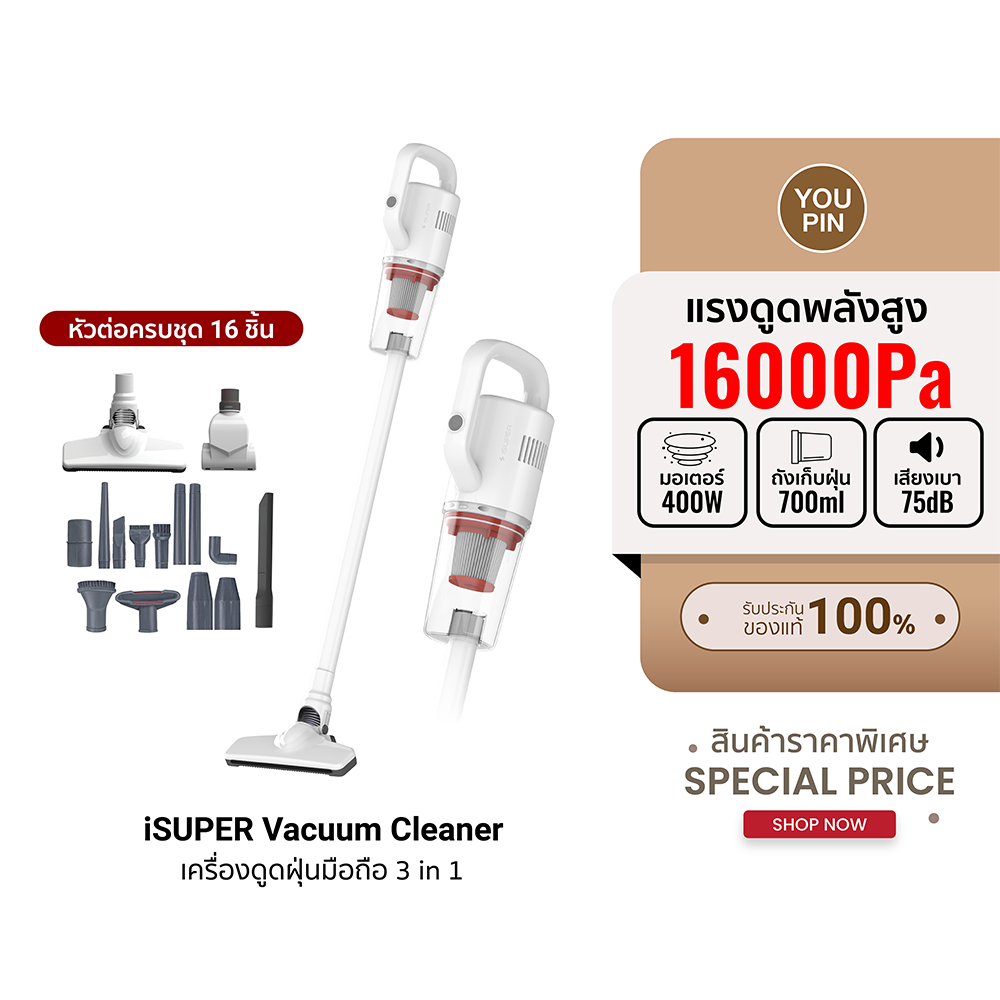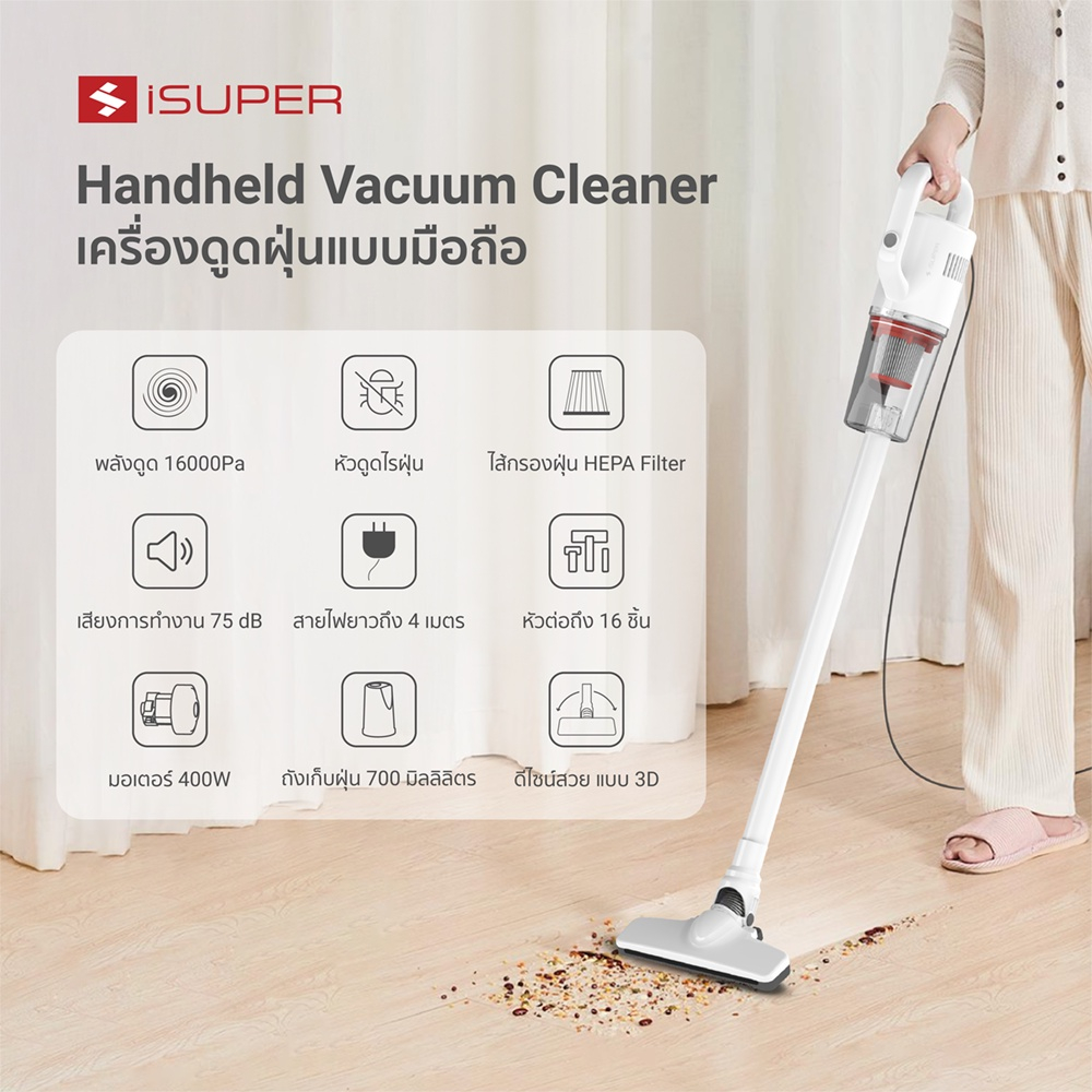 [ประกันศูนย์ไทย 1 ปี] iSUPER Vacuum Cleaner 3 IN 1 เครื่องดูดฝุ่นมือถือ แรงดูดสูงถึง 16Kpa เครื่องดูดฝุ่น พร้อมผ้าถู -1Y
