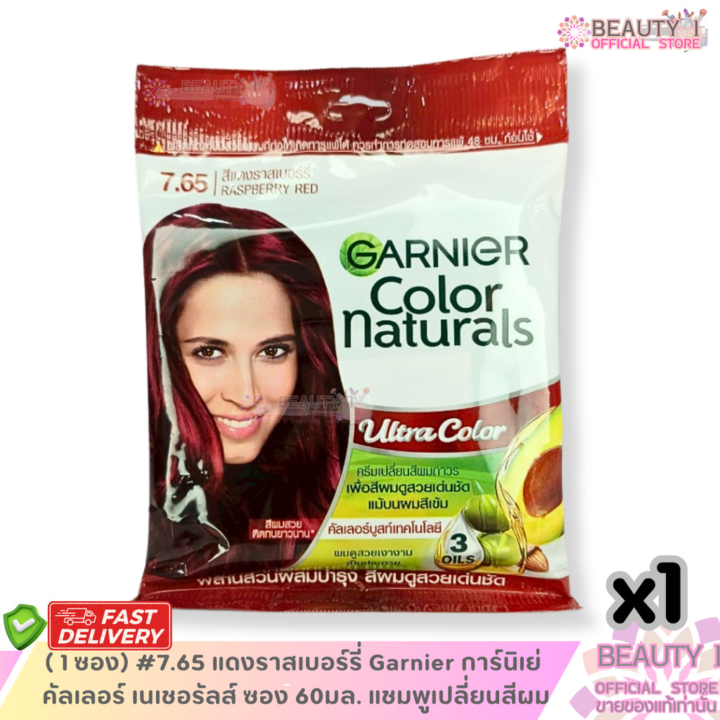 ( 1 ซอง) #7.65 แดงราสเบอร์รี่ Garnier การ์นิเย่ คัลเลอร์ เนเชอรัลส์ ซอง 60มล. แชมพูเปลี่ยนสีผม