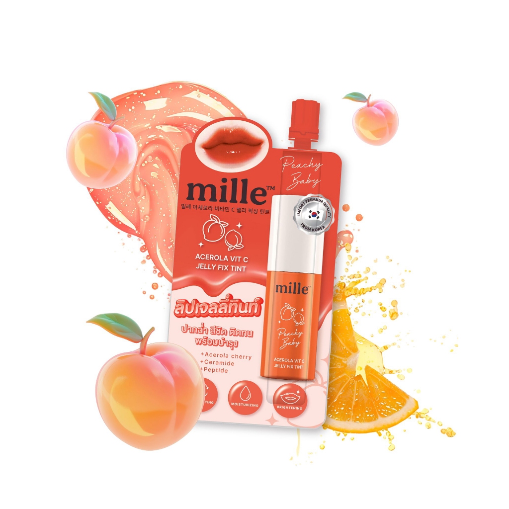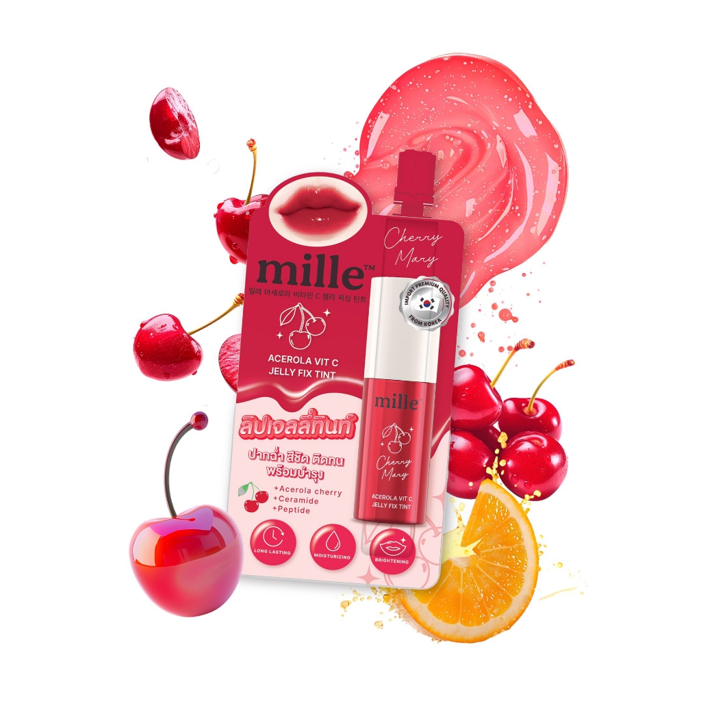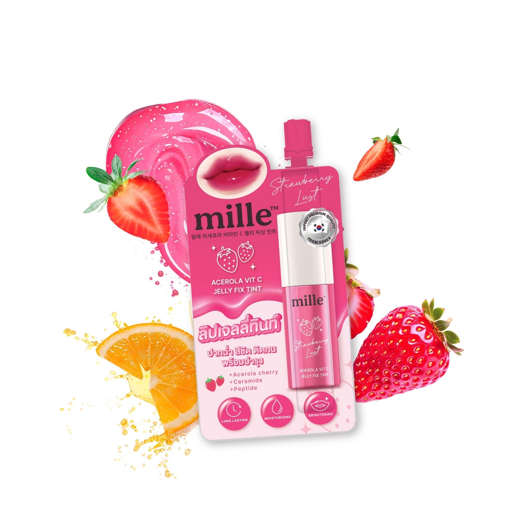 [ กล่องx6 ] Mille Acerola Vit C Jelly Fix Tint มิลเล่ อะเซโรลา วิต ซี เจลลี่ ฟิกซ์ ทินท์ 3g.