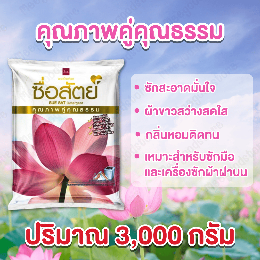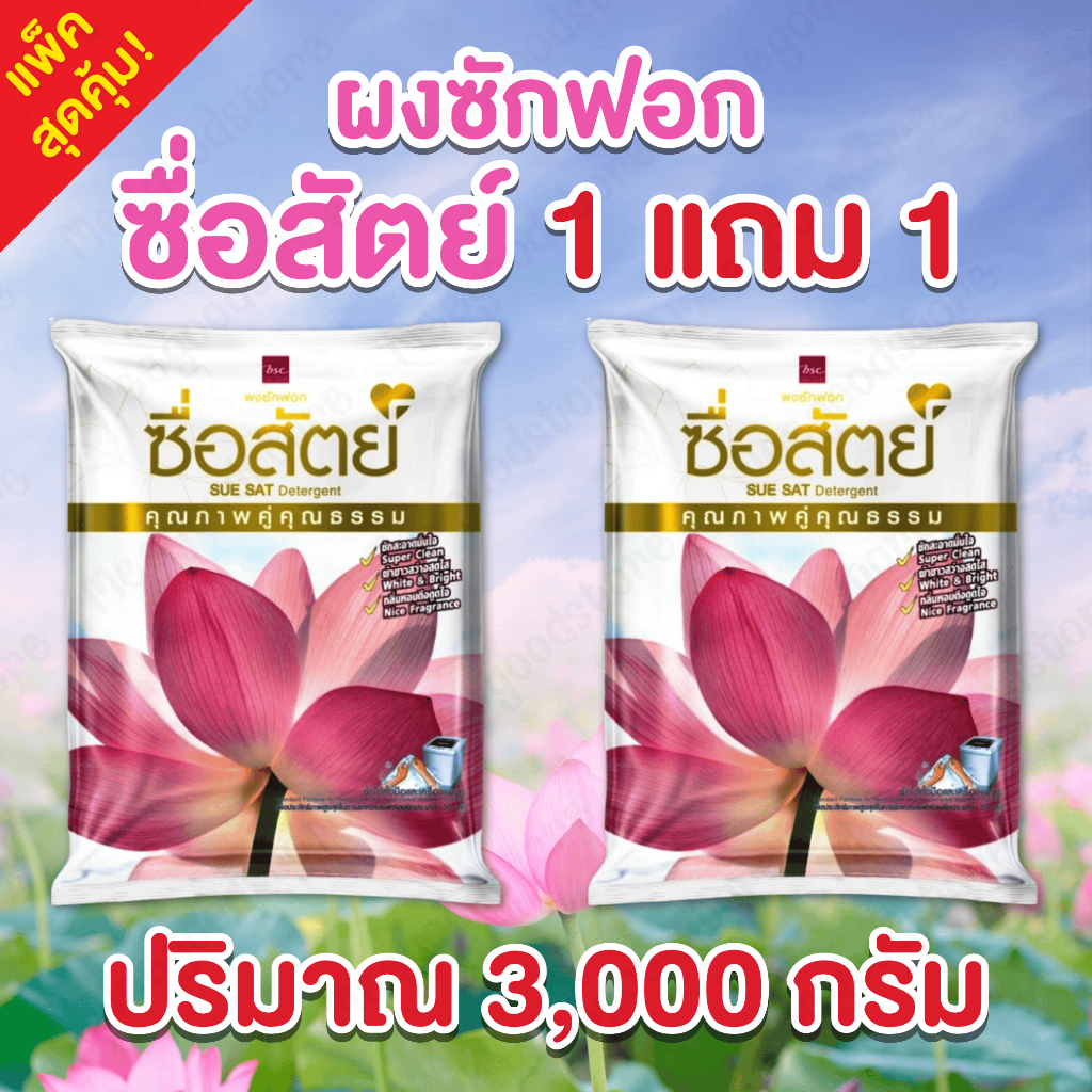 1 แถม 1 ซื่อสัตย์ ผงซักฟอก สำหรับซักมือ และเครื่องซักผ้าฝาบน ขนาด 3,000 กรัม/ถุง ซักสะอาด ล้างออกง่าย เสื้อผ้าไม่หมอง