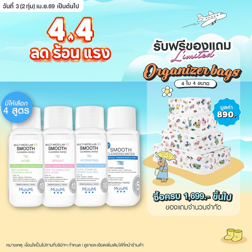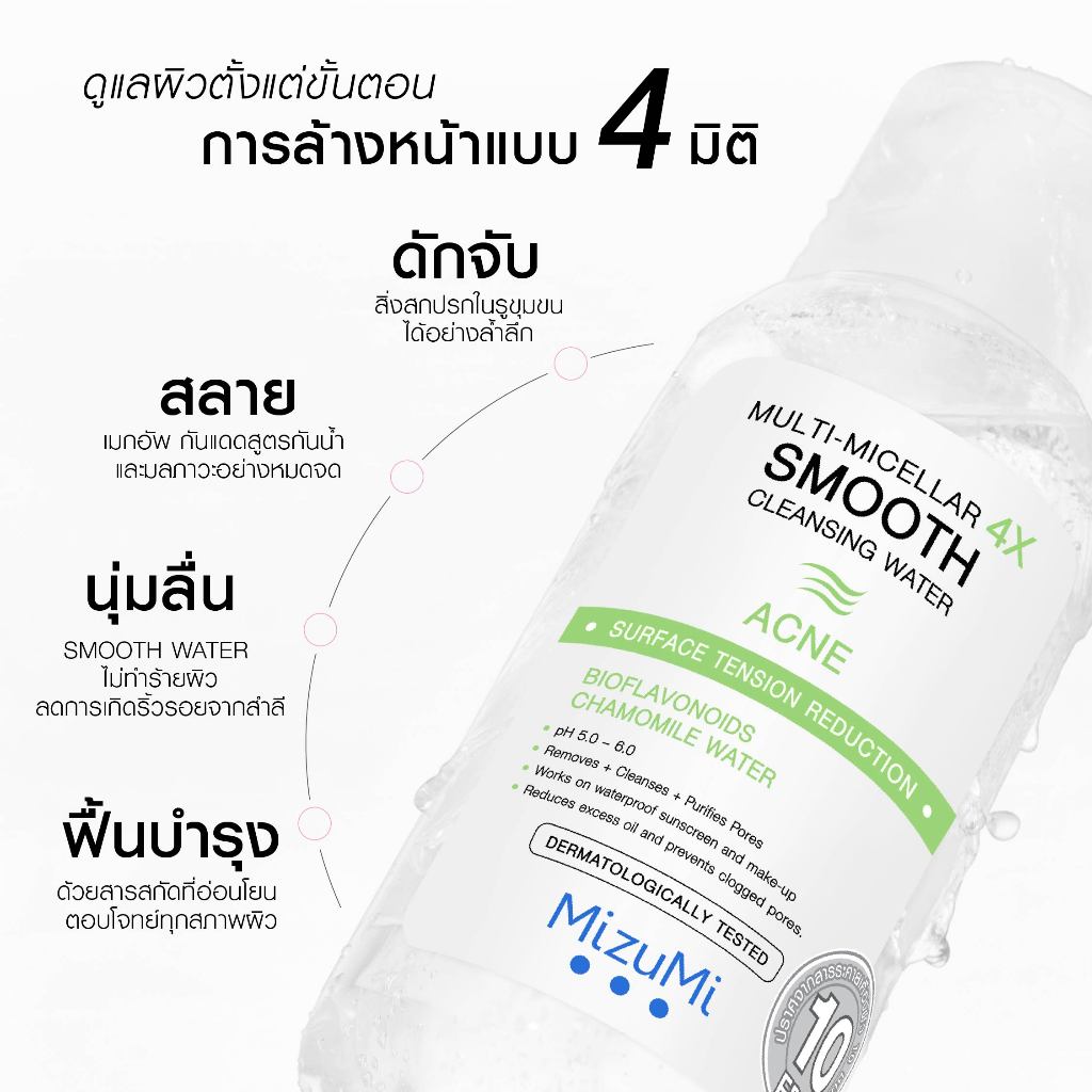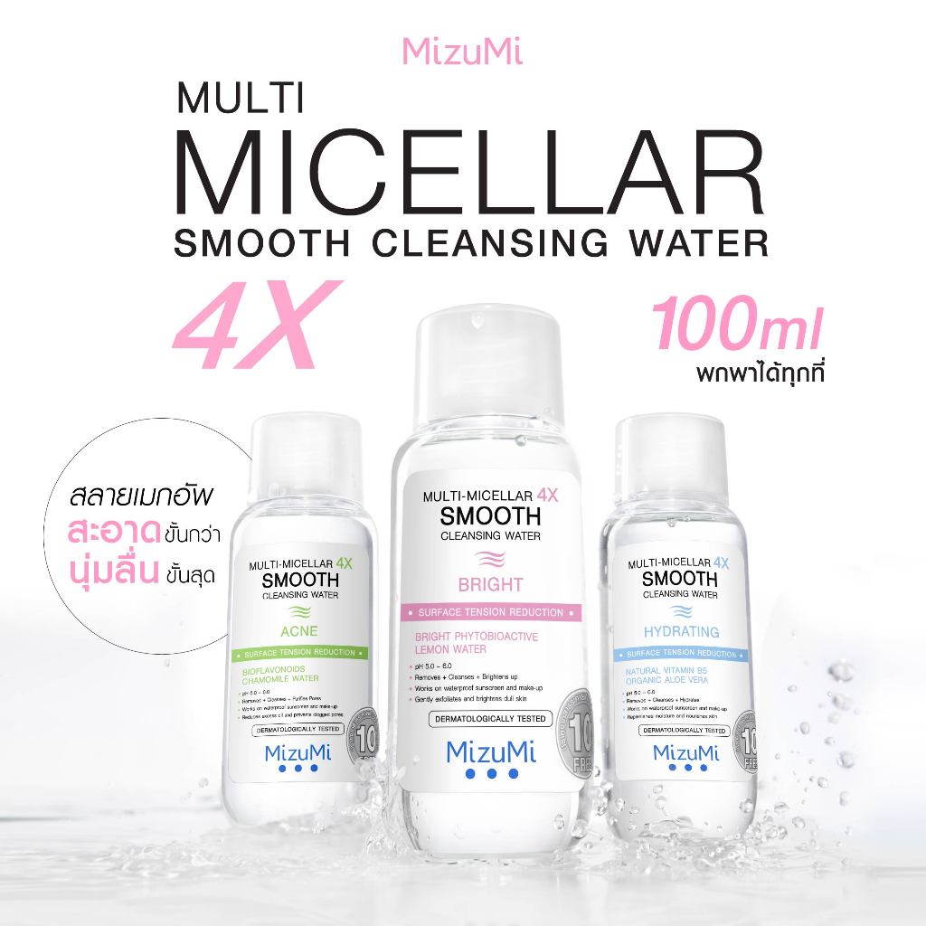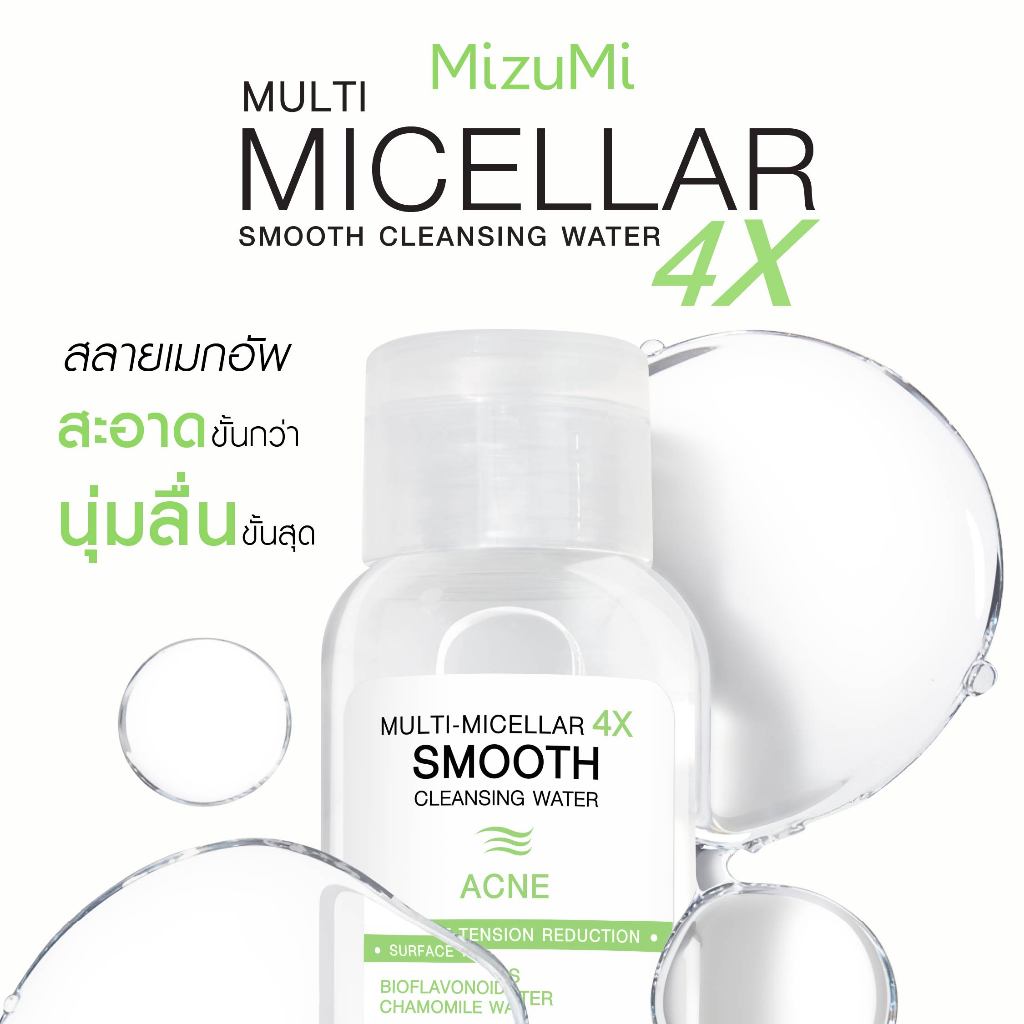 MizuMi Multi-Micellar 4X Smooth Cleansing Water 100 ml คลีนซิ่งล้างเมกอัพ สัมผัสนุ่มลื่น ลดการก่อริ้วรอย ผิวเป็นสิว