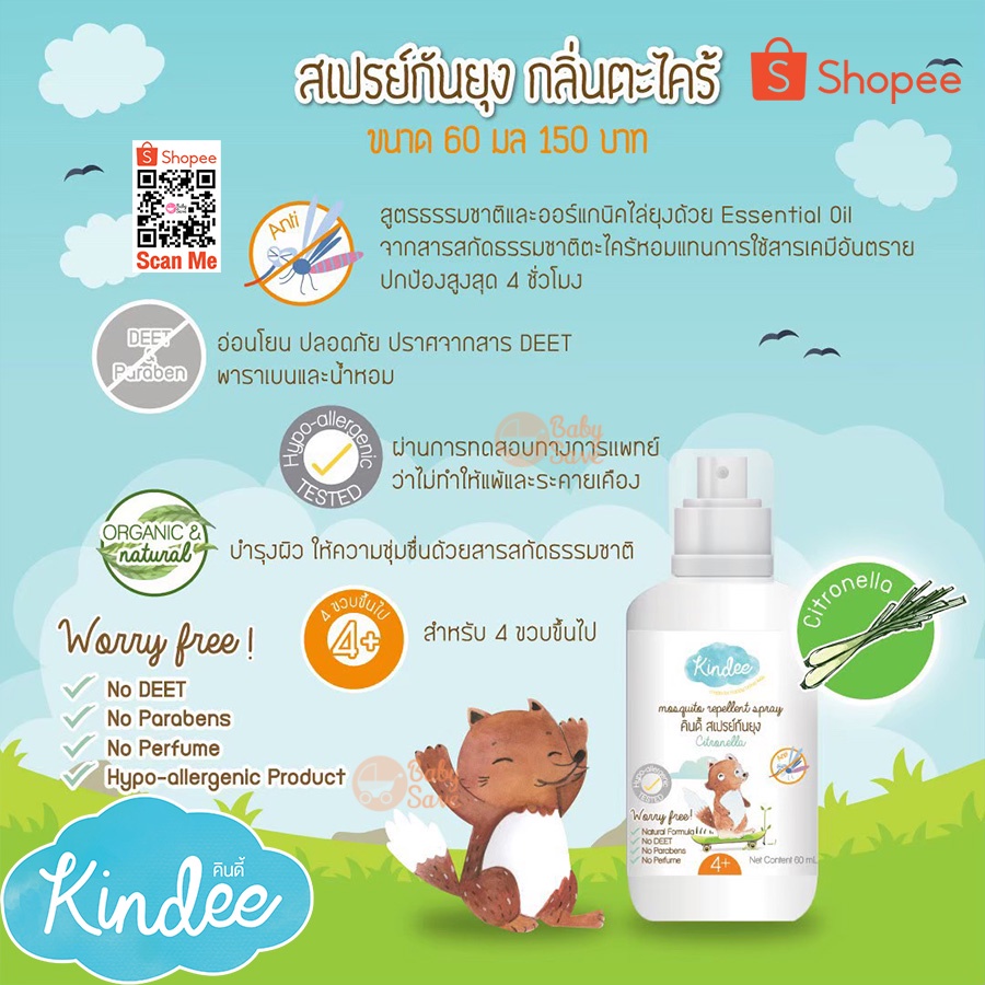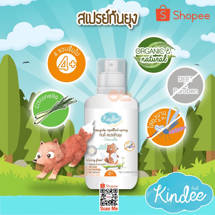 Kindee สเปรย์กันยุง 4+ ออร์แกนิค ตะไคร้หอม สำหรับเด็ก 4 ขวบขึ้นไป