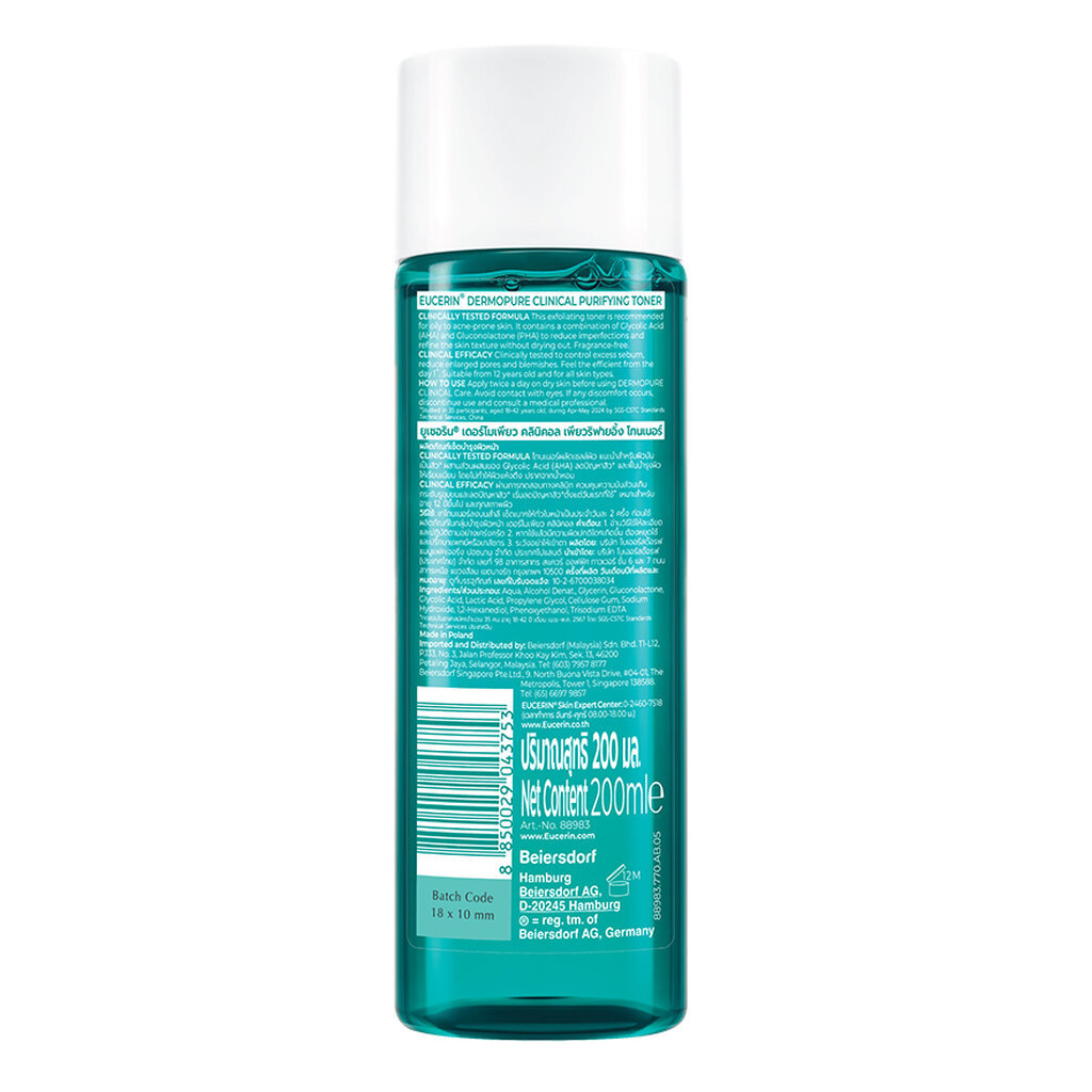 Eucerin ยูเซอริน เดอร์โมเพียว คลินิคอล เพียวริฟายอิ้ง โทนเนอร์ 200 มล. สำหรับผิวมัน-เป็นสิว