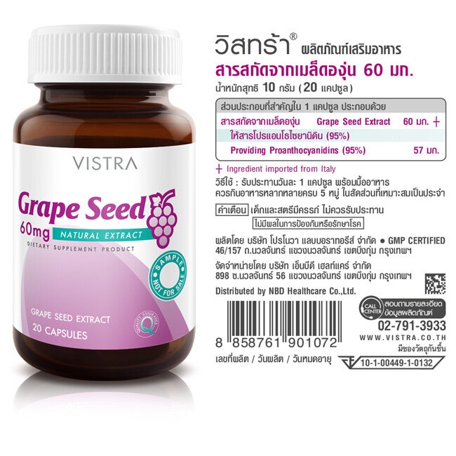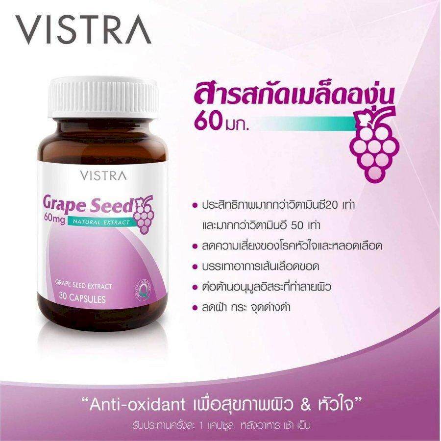 Vistra Grape seed 60 mg วิสทร้า สารสกัดจากเมล็ดองุ่น 60 มก. เพิ่มความแข็งแรงของหลอดเลือด 1 ขวด ขนาด 30 เม็ด