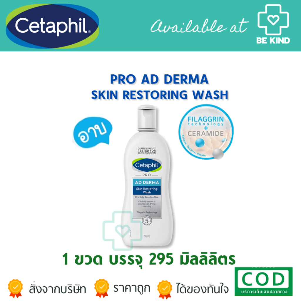 [ฟรีคละ 1 ชิ้น] Cetaphil Pro AD Derma Skin Restoring body wash 295ml ครีมอาบน้ำสำหรับผิวแห้งมาก แพ้ง่าย ปราศจากน้ำหอม