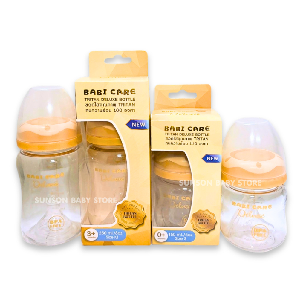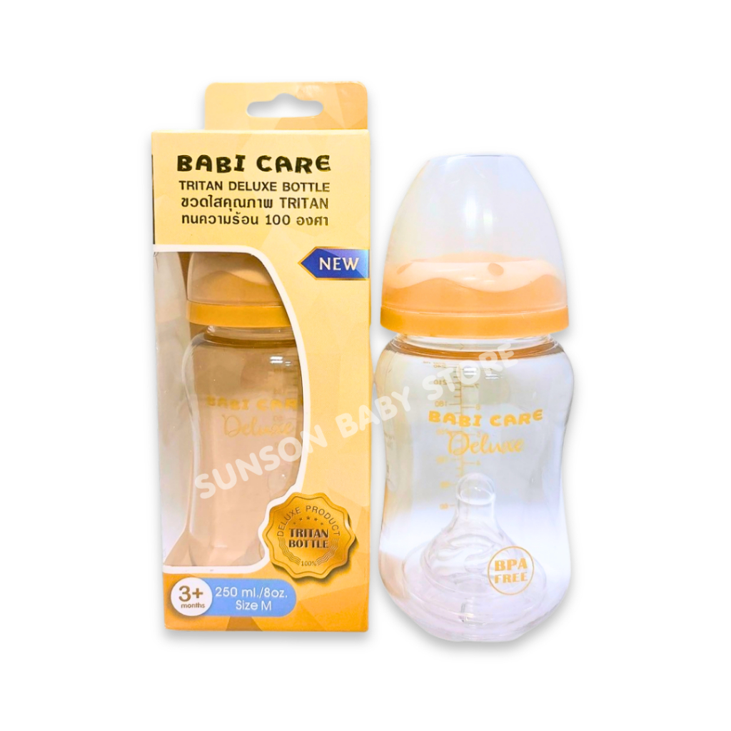 Babi Care ขวดนมคอกว้าง เบบี้แคร์ ขวดนมไตรตัน ดีลักซ์ TRITAN Deluxe (ขนาด 5/8 ออนซ์) ขวดนมเด็ก พร้อมจุกนมซิลิโคน