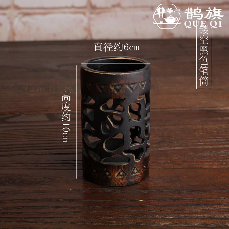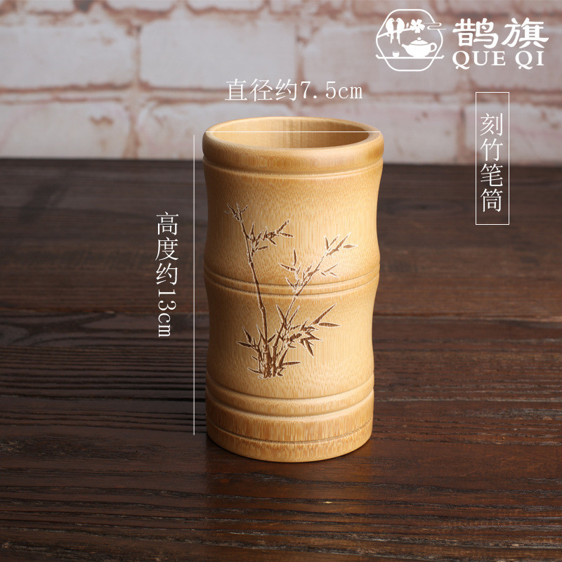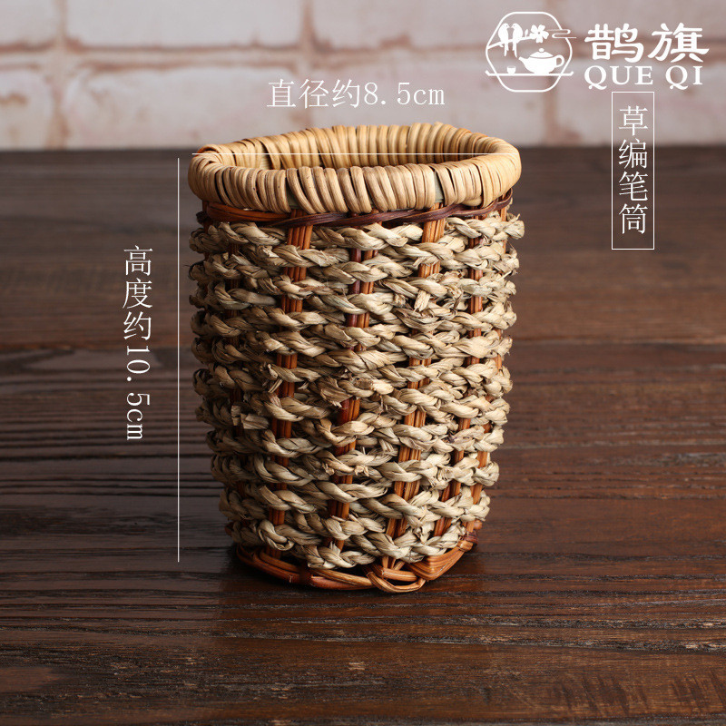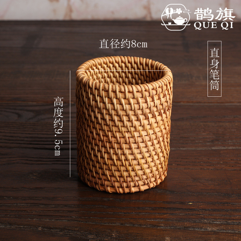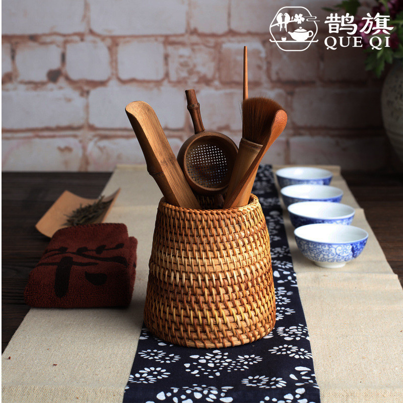[ธงนกกางเขน] พิธีชงชาหกสุภาพบุรุษหลอดเก็บหลอดพิธีชงชาที่ทําด้วยมือฟางหวายทอไม้ไผ่ทอหลอดชาผู้ถือปากกาไม้ไผ่
