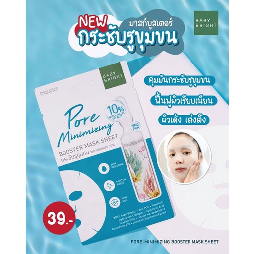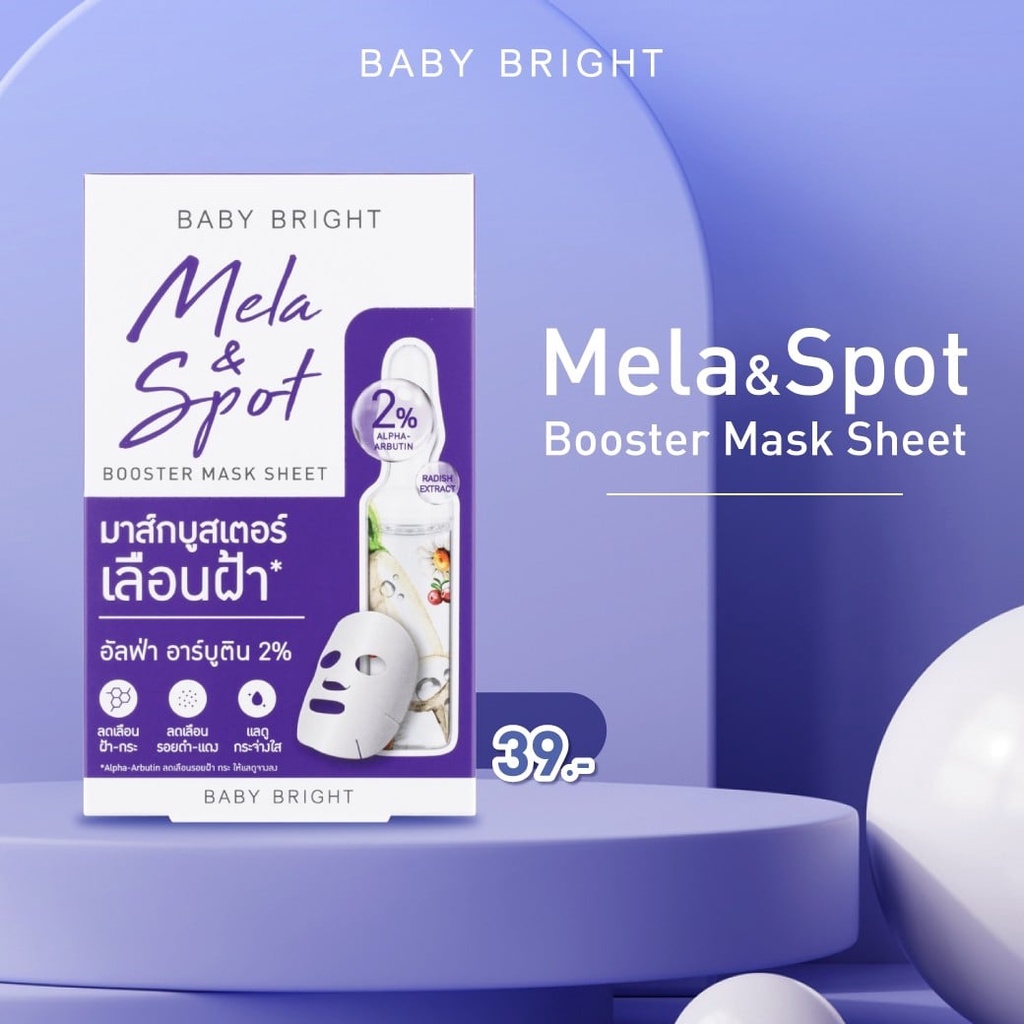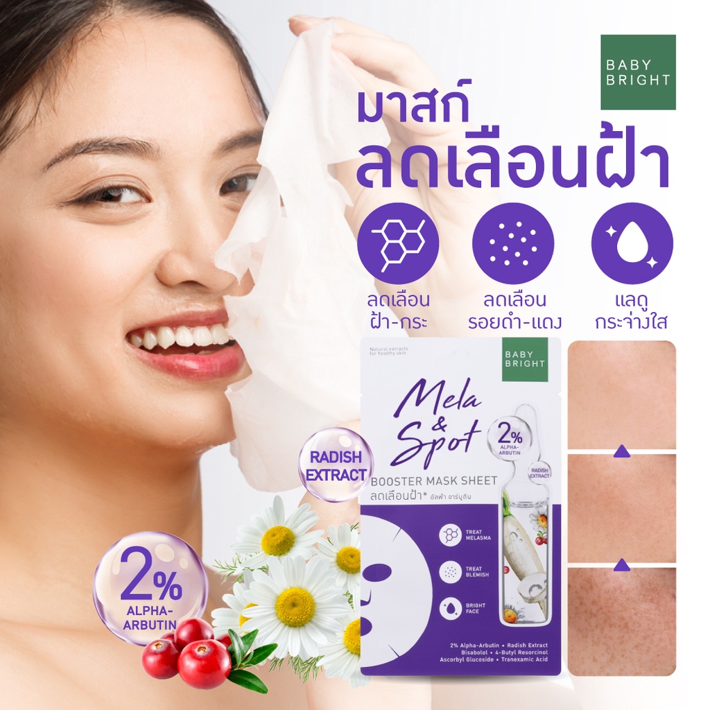 Baby Bright บูสเตอร์มาส์กชีท 20g เบบี้ไบร์ท มาส์กชีทสูตรเพื่อผิวกระจ่างใส ไร้ฝ้า กระ และจุดด่างดำ
