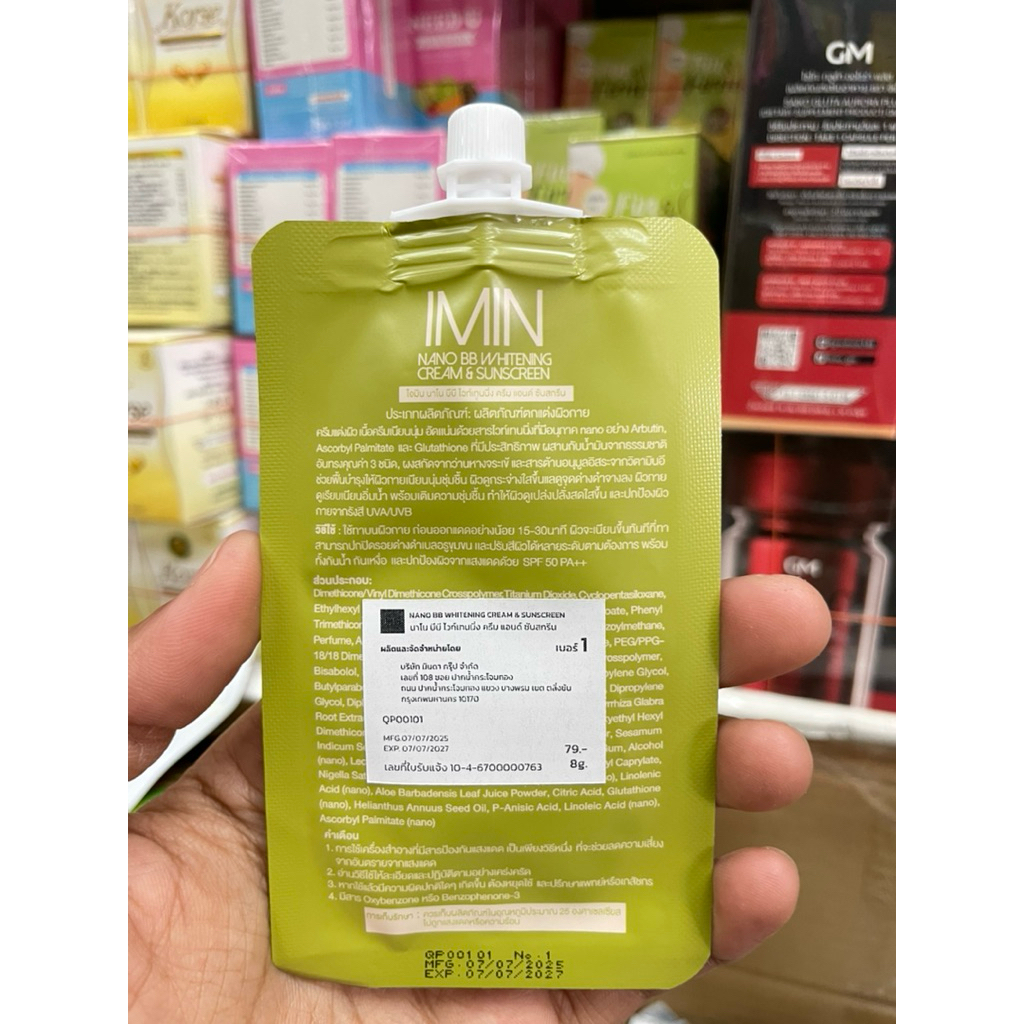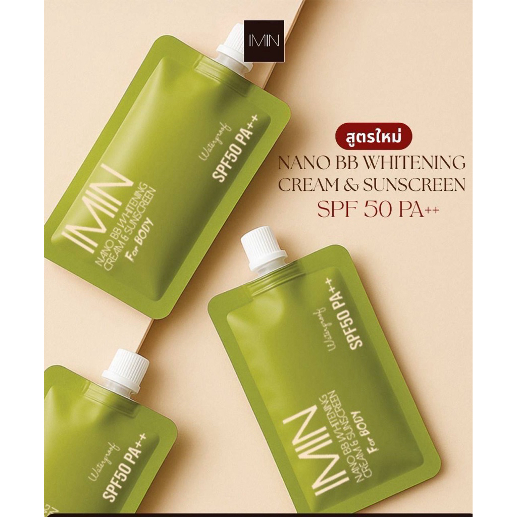 ไอมิน( ซอง)นาโน IMIN Nano Whitening Cream & Sunscreen 8g บีบีไวท์เทนนิ่งครีม แอนด์ซันสกรีน มี 3 เบอร์ให้เลือก