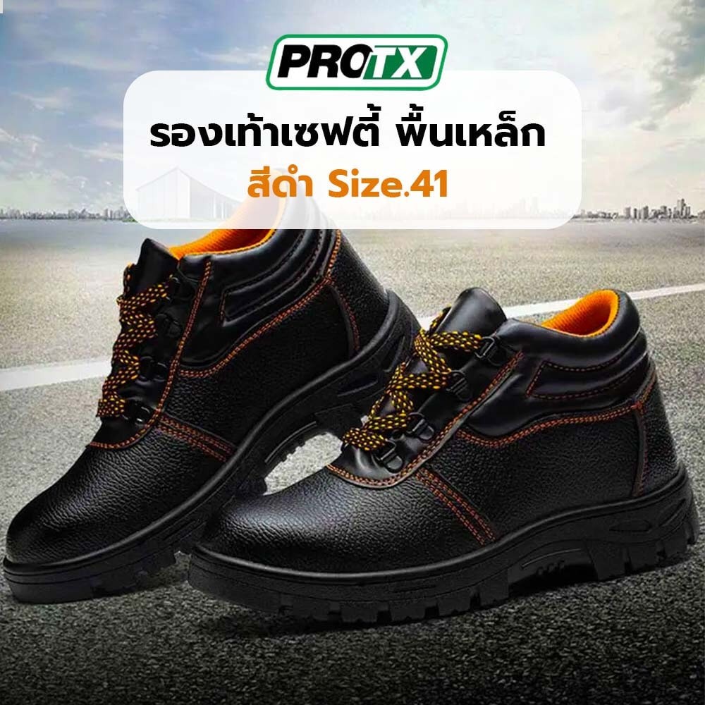 GlobalHouse รองเท้าเซฟตี้ พื้นเหล็ก เบอร์ 41 รุ่น PW106 สีดำ ยี่ห้อ PROTX
