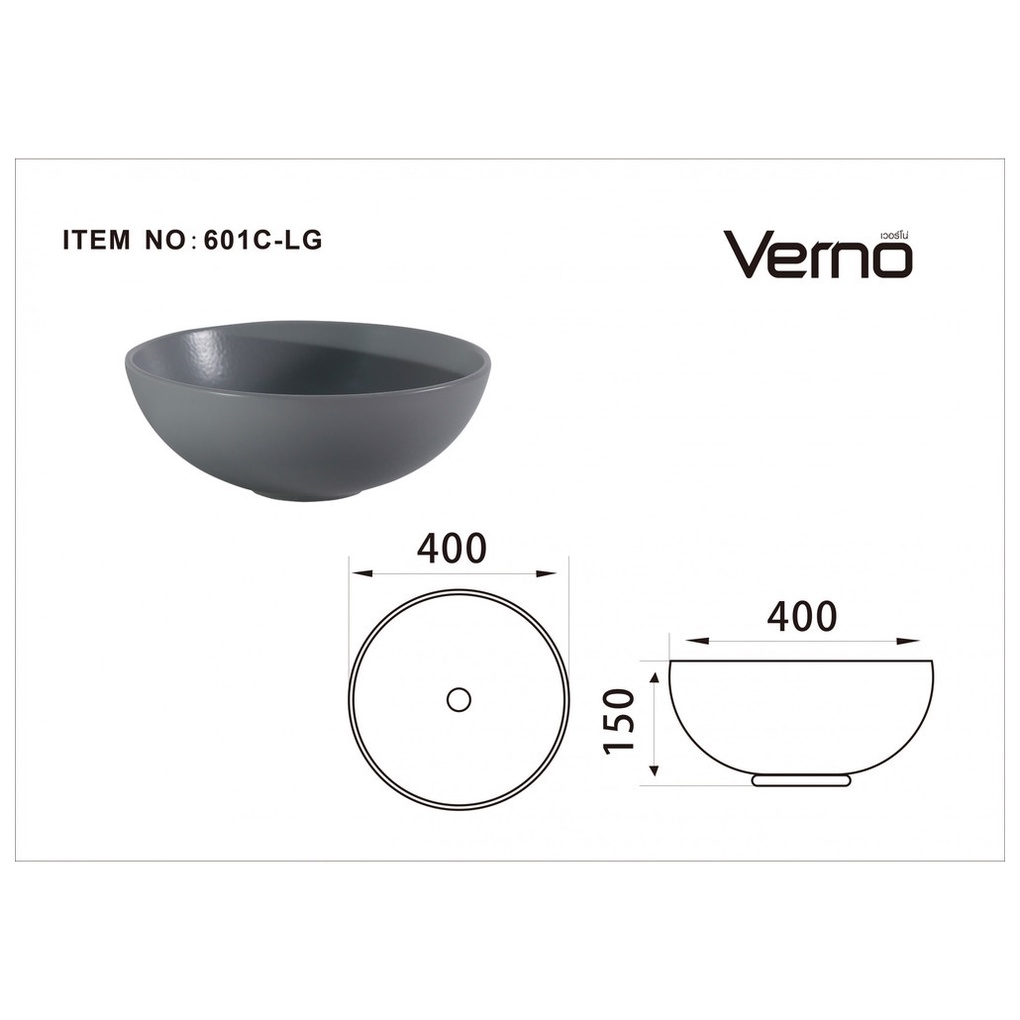 Verno อ่างล้างหน้าวางบนเคาน์เตอร์ก๊อกนอกอ่าง **ไม่รวมก๊อกน้ำ** รุ่น เมแกน VN-601C-LG สีเทาแมท
