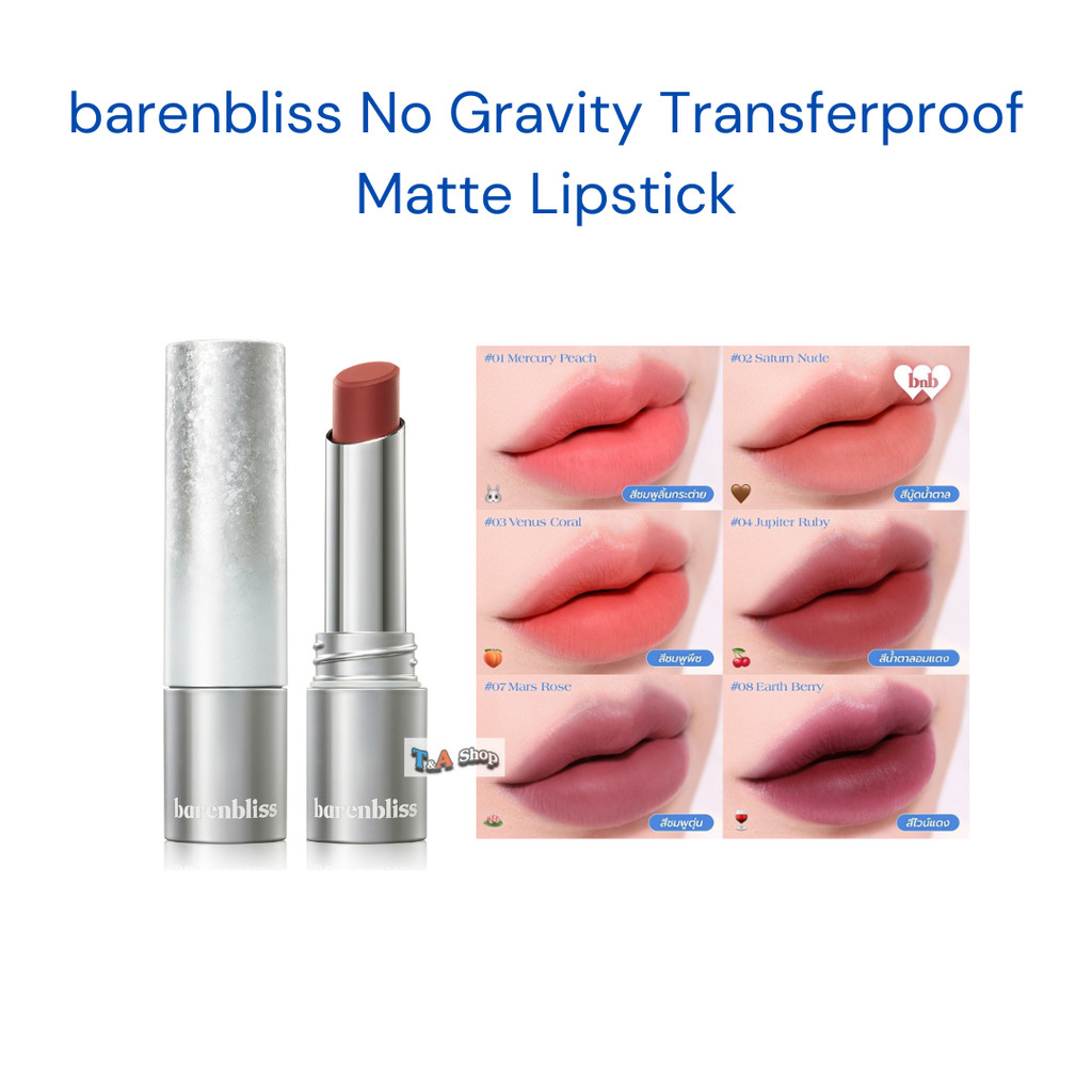 ลิปแมท Barenbliss No Gravity Transferproof Matte Lipstick ลิปสติก กันน้ำ 3 g. bnb สีสวย ติดทน