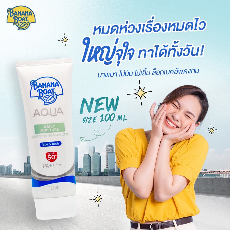 Banana Boat Aqua Daily Moisture UV Protection Sunscreen Lotion SPF 50+/PA++++ Face&Body 100ml กันแดดผิวหน้าและกาย.