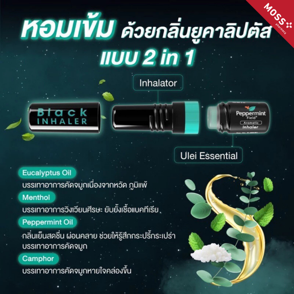 ยาดมเป๊ปเปอร์มิ้นท์ Peppermint Field Black Inhaler 2 in 1 (6 หลอด/แผง) หอมชื่นใจ ปริมาณ 2 CC