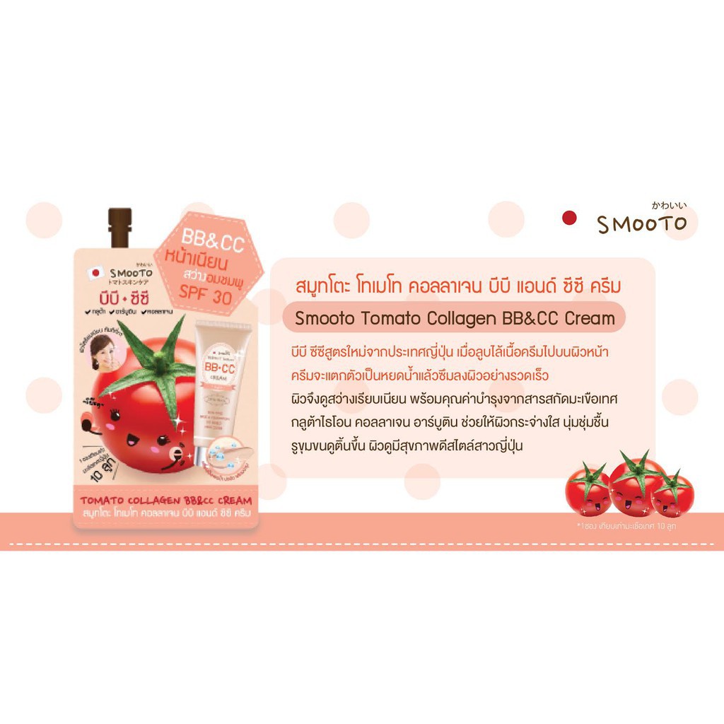 Smooto Tomato Collagen White Serum หรือ BB&CC Cream(สูตรใหม่) หรือ Smooth Mask 10g.(1 ซอง)