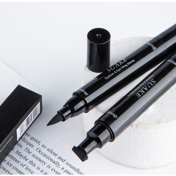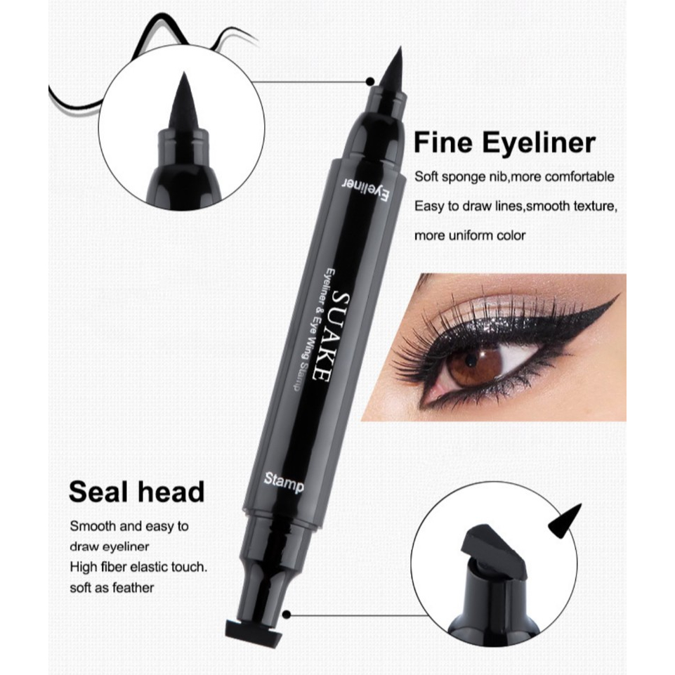 SUAKE 7057 อายไลเนอร์หัวสลิมเ ล็ก อายไลเนอร์แสตมป์สองหัว 2IN1 เขียนง่าย เส้นคม กันน้ำ ติดทน แห้งไว ไม่แพนด้า Eyeliner