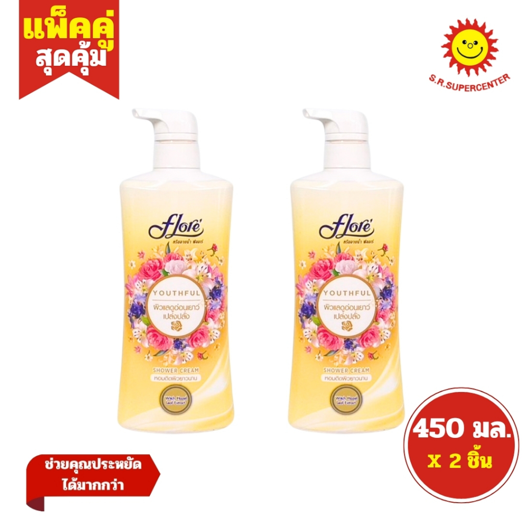 [ แพ็ค2ขวด ] ฟลอเร่ ครีมอาบน้ำ หอมละมุน ขนาด 450 มล. (แพ็ค2ขวด) คละสูตร