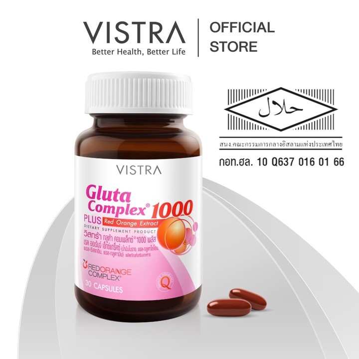 VISTRA Gluta Complex 1000 Plus Red Orange Extract 30 Capsules บรรจุ 30 แคปซูล วิสทร้า กลูต้า คอมเพล็กซ์ 1000