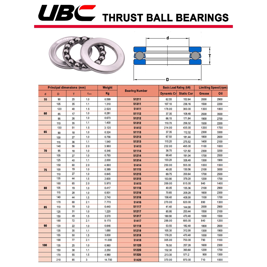 UBC ตลับลูกปืนกันรุน เม็ดกลม ( THRUST BALL BEARINGS ) 51215 51216 51217 51218 51220