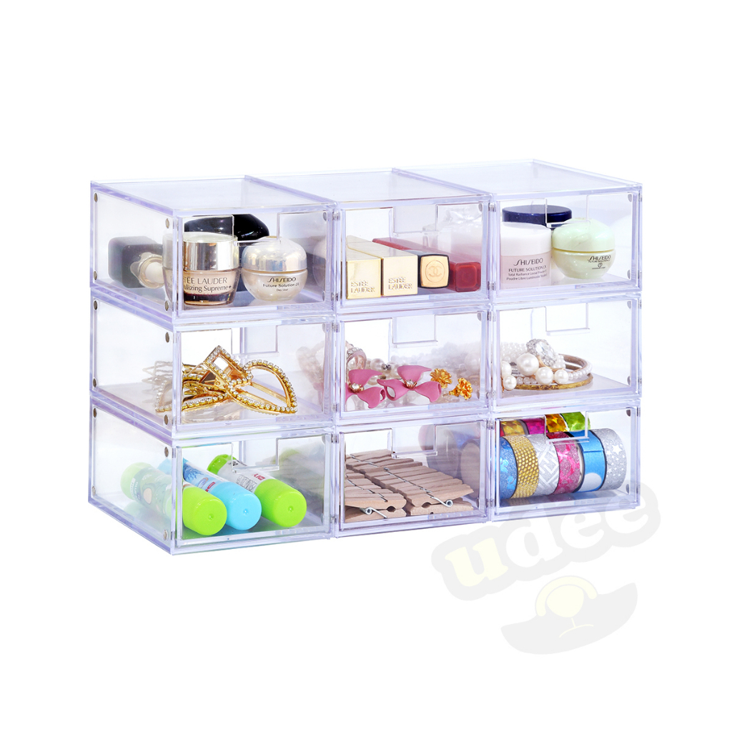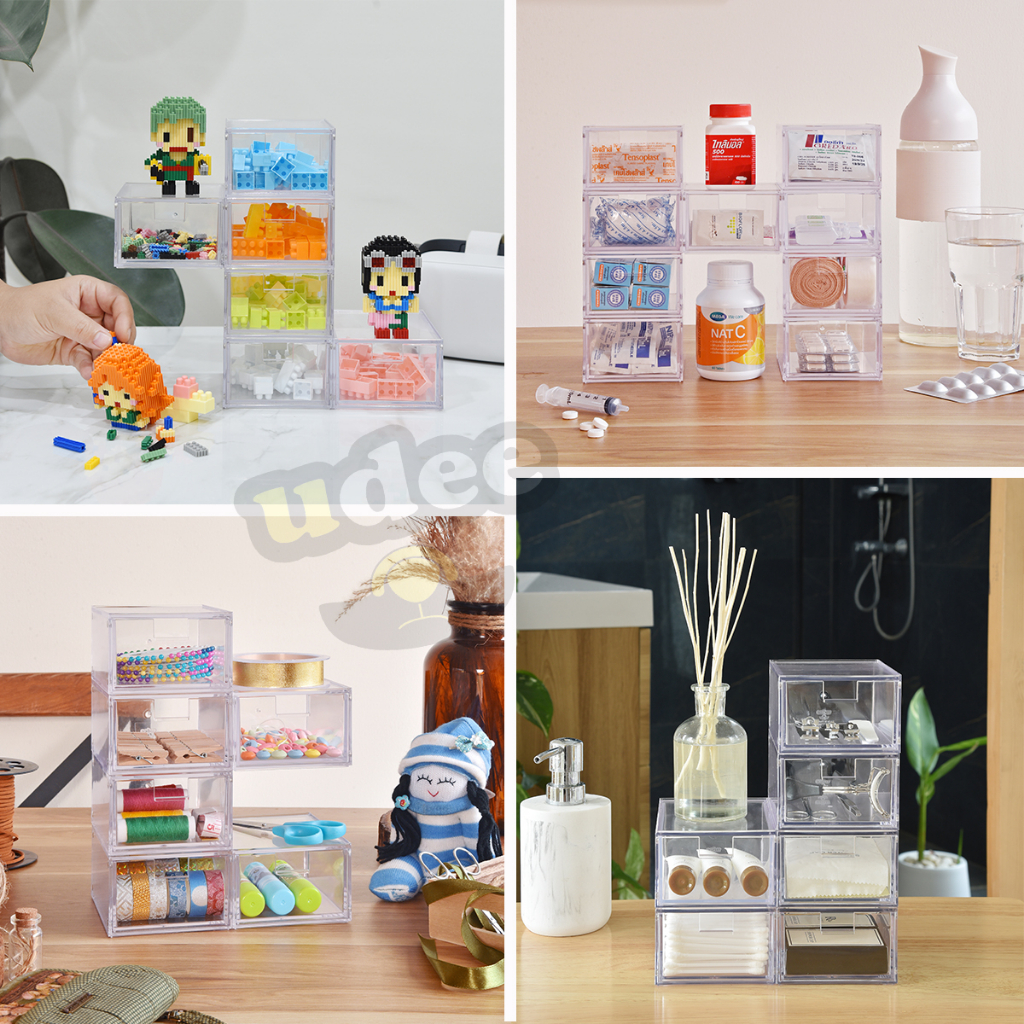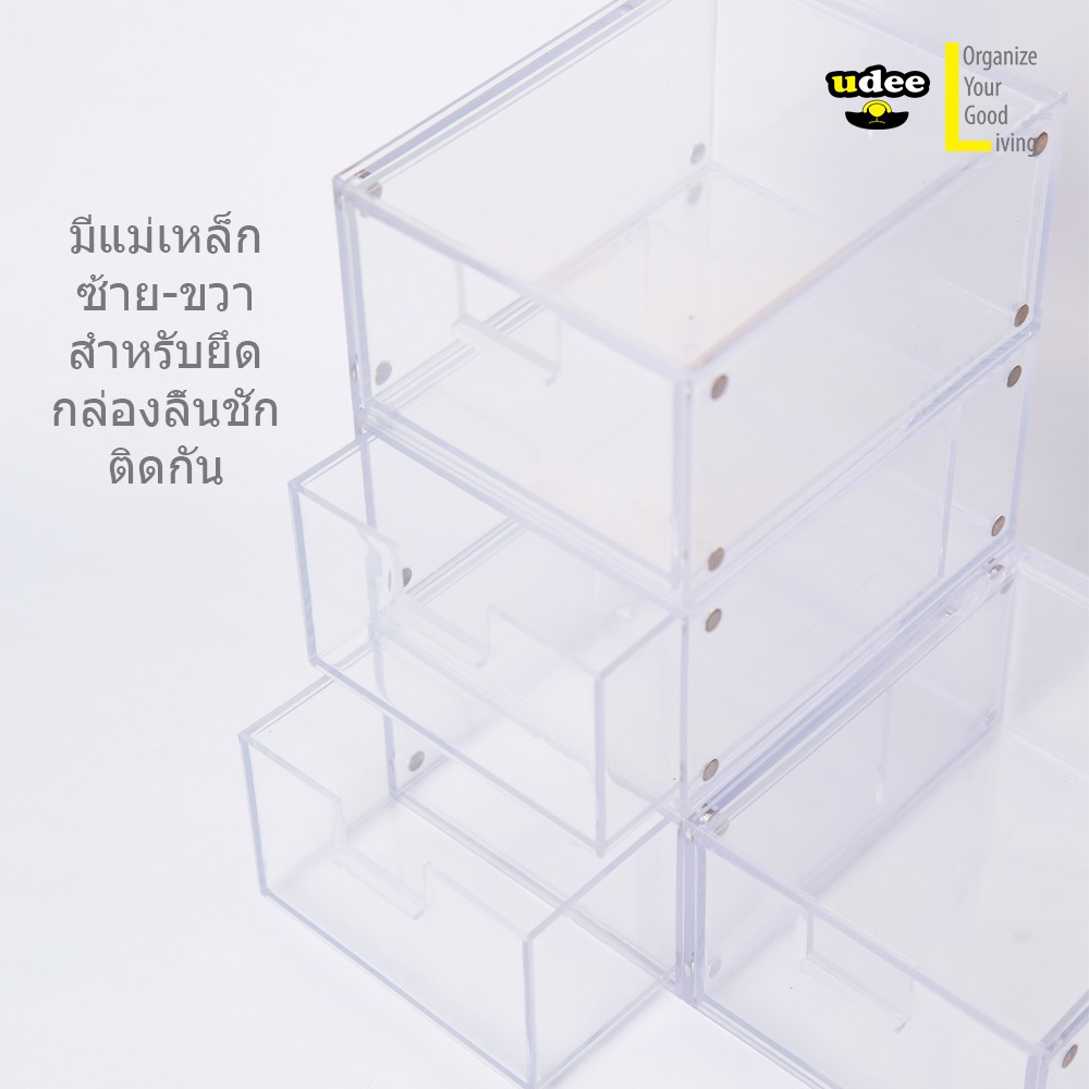 UDEEกล่องลิ้นชักติดแม่เหล็กขนาดเล็ก วางบนโต๊ะ โปรงใส จัดเรียงได้อย่างอิสระ จัดเก็บสิ่งของชิ้นเล็กๆ