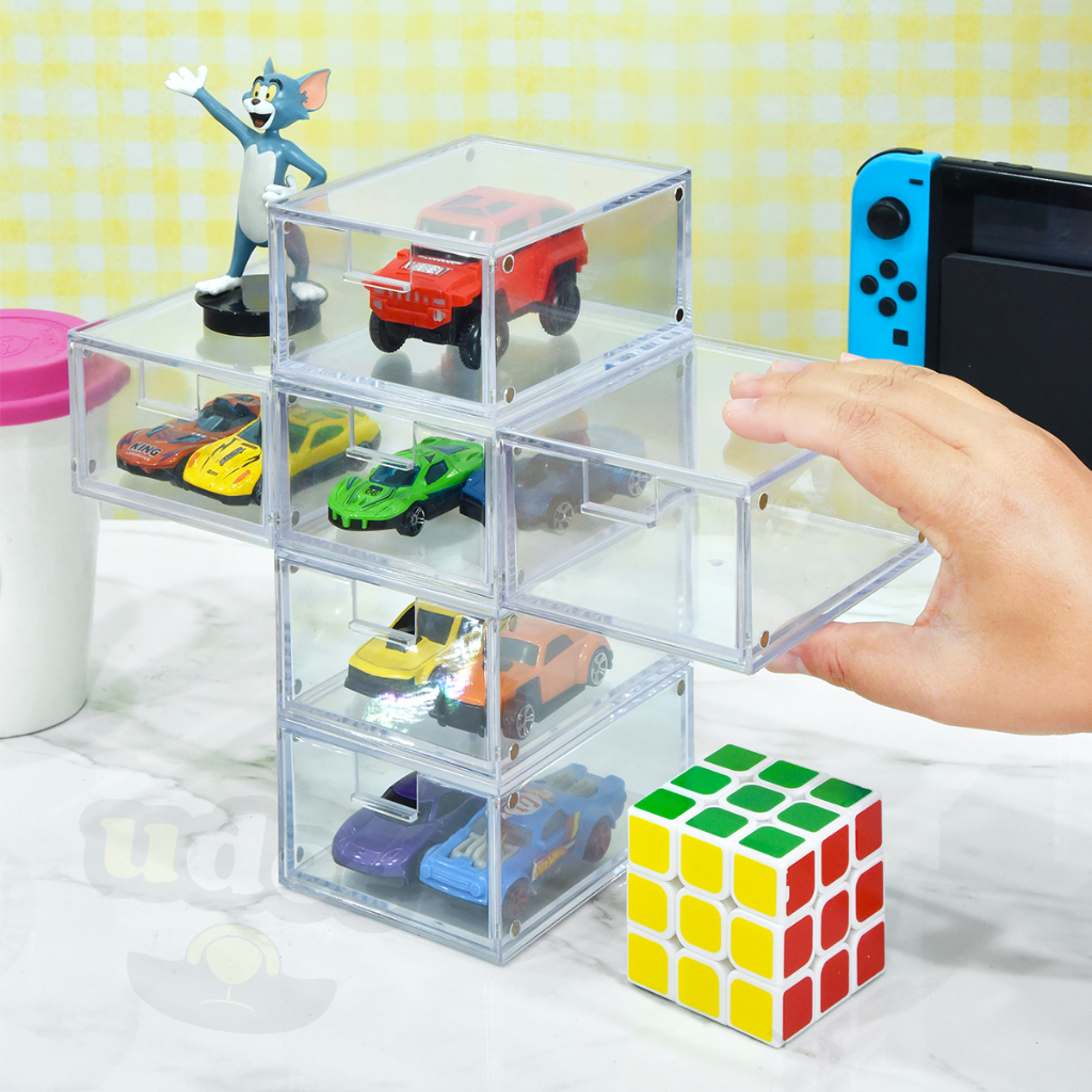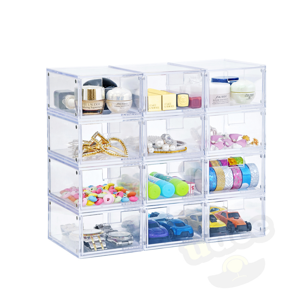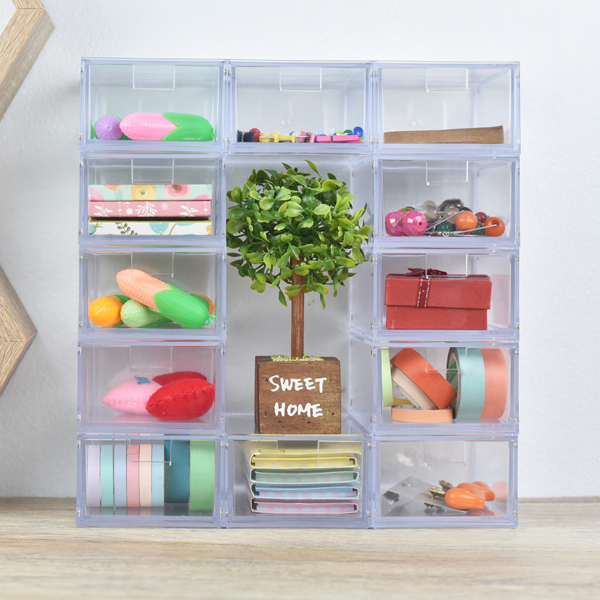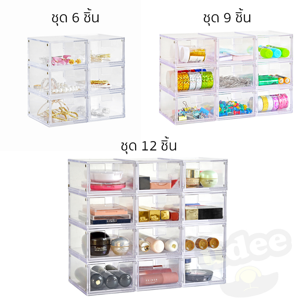 UDEEกล่องลิ้นชักติดแม่เหล็กขนาดเล็ก วางบนโต๊ะ โปรงใส จัดเรียงได้อย่างอิสระ จัดเก็บสิ่งของชิ้นเล็กๆ