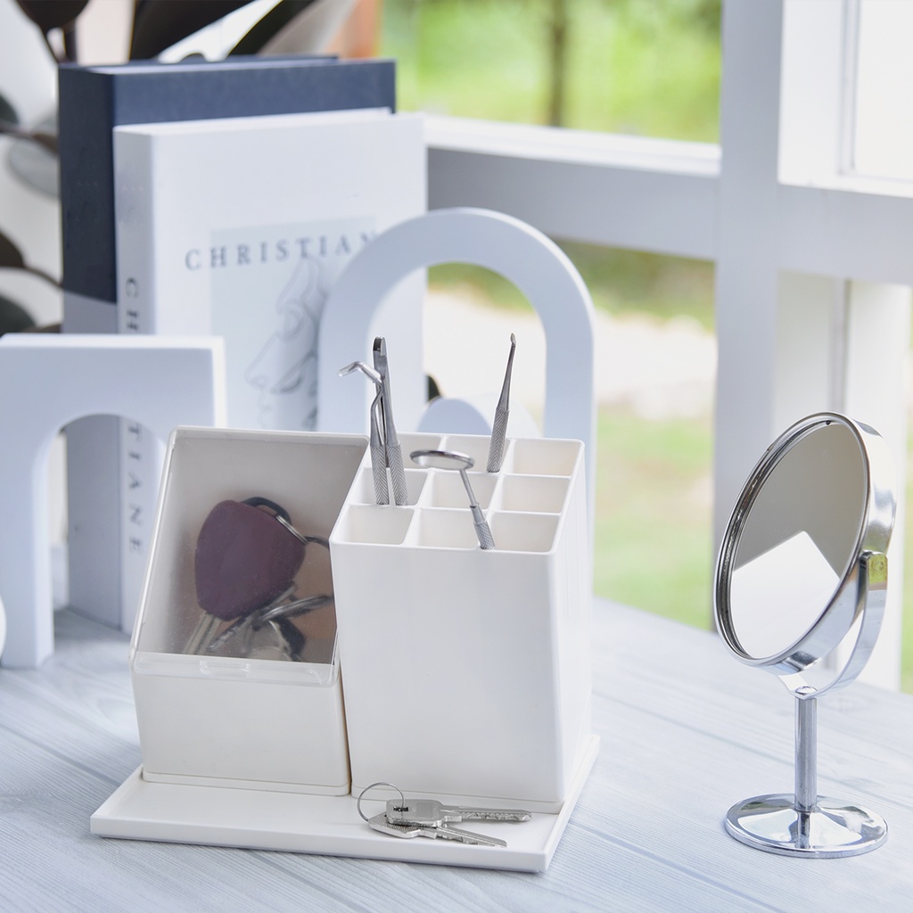 UDEE ชุดจัดเก็บบนโต๊ะดีไซน์เอียงพร้อมถาด_จัดเก็บอุปกรณ์ต่างๆบนโต๊ะได้สามารถวางมือถือและชาร์ตด้วยได้