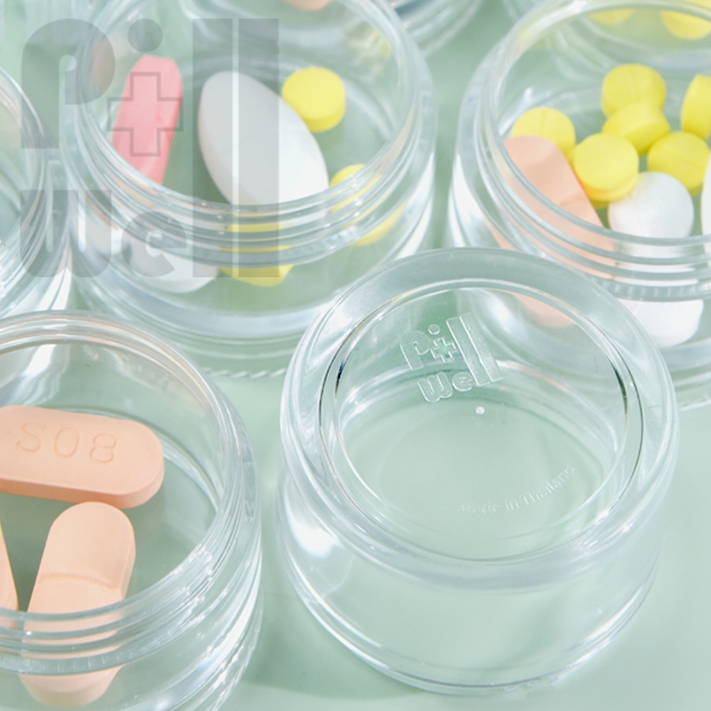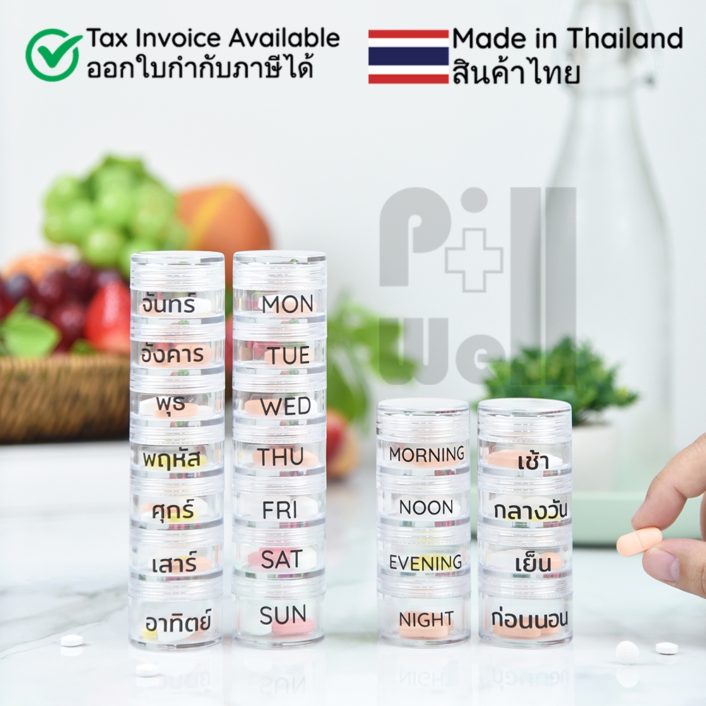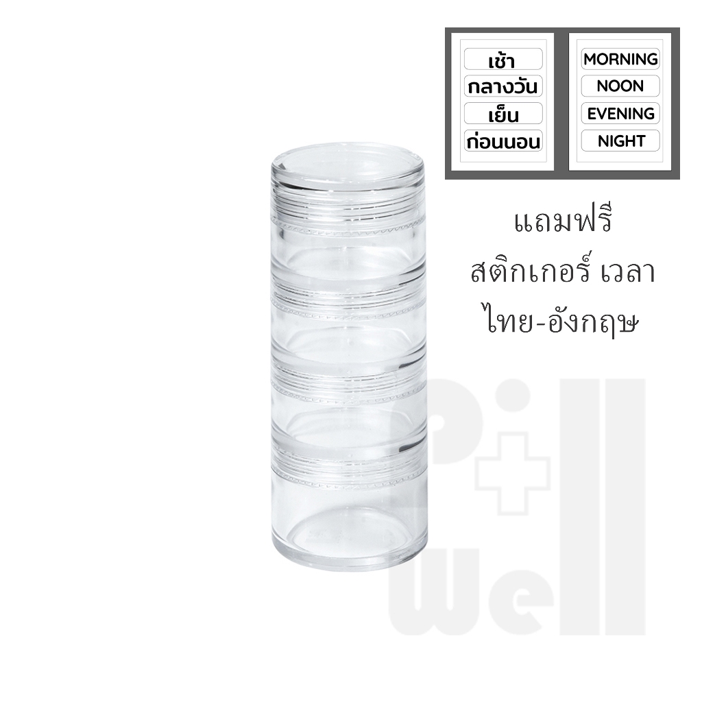 PillWell ตลับพลาสติกใสฝาเกลียวสำหรับใส่ยา มีแถมสติกเกอร์วันเวลาภาษาไทย-อังกฤษ ตัวหนังสือใหญ่มองเห็นชัดสำหรับผู้สูงอายุ