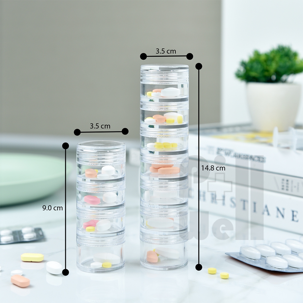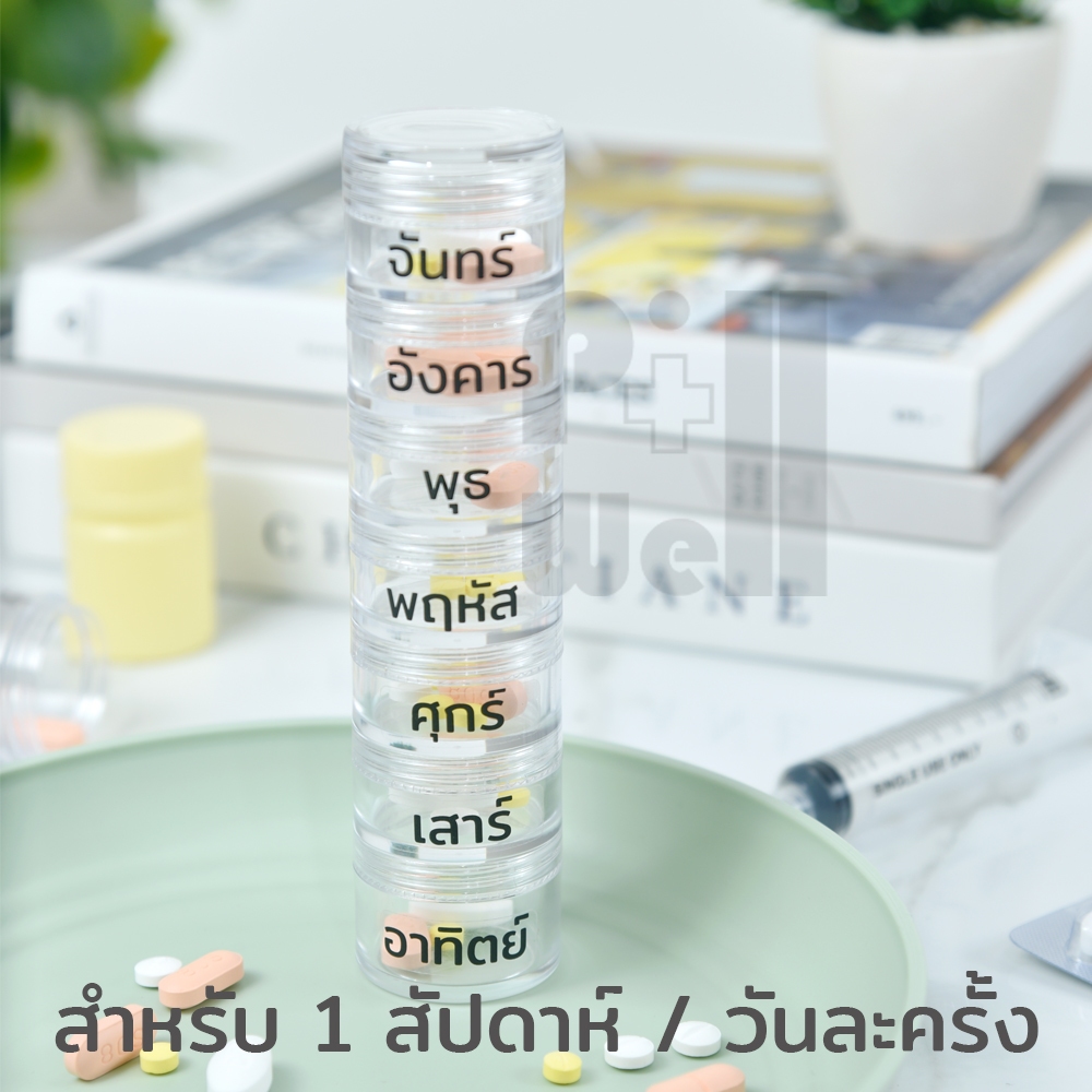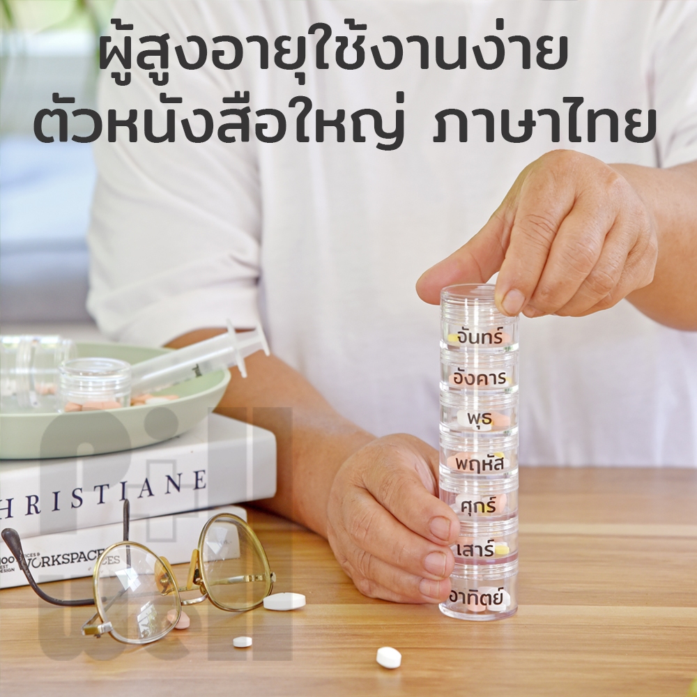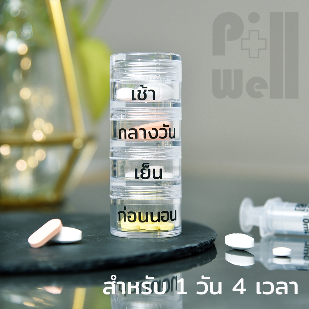 PillWell ตลับพลาสติกใสฝาเกลียวสำหรับใส่ยา มีแถมสติกเกอร์วันเวลาภาษาไทย-อังกฤษ ตัวหนังสือใหญ่มองเห็นชัดสำหรับผู้สูงอายุ