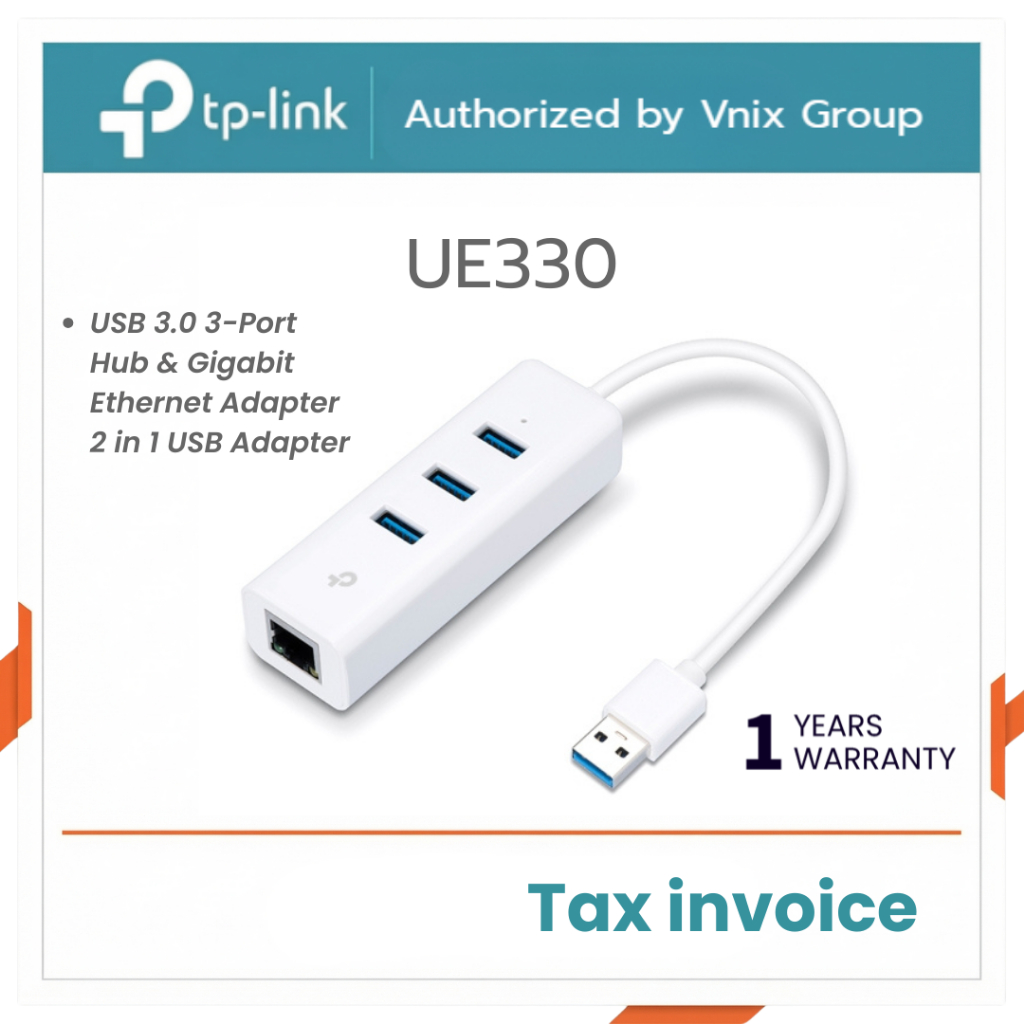 TP-LINK UE330 USB3.0 3-PORT HUB & GIGABIT ETHERNET ADAPTER 2 IN 1 USB รับประกัน 1ปี By Vnix Group