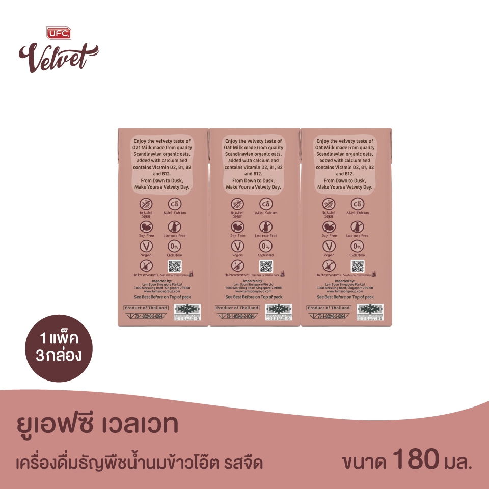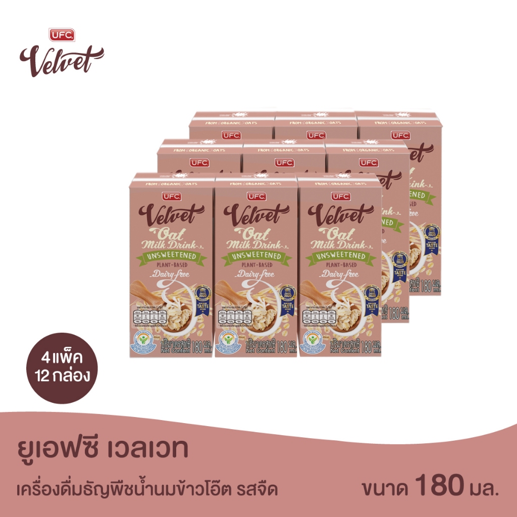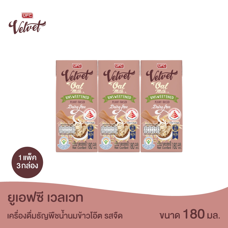 UFC Velvet – Oat Milk Unsweetened ยูเอฟซี เวลเวท เครื่องดื่มธัญพืชน้ำนมข้าวโอ๊ต รสจืด 180 มิลลิลิตร